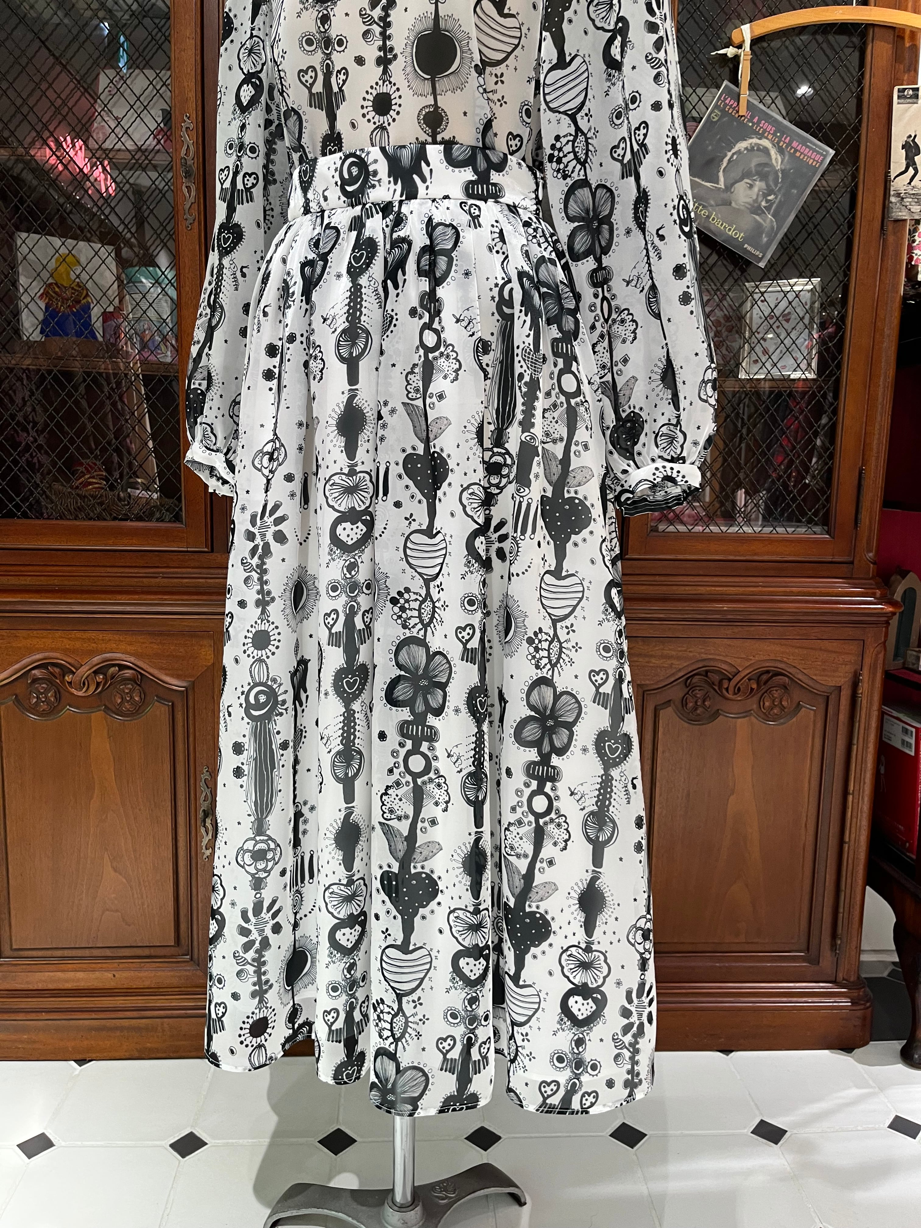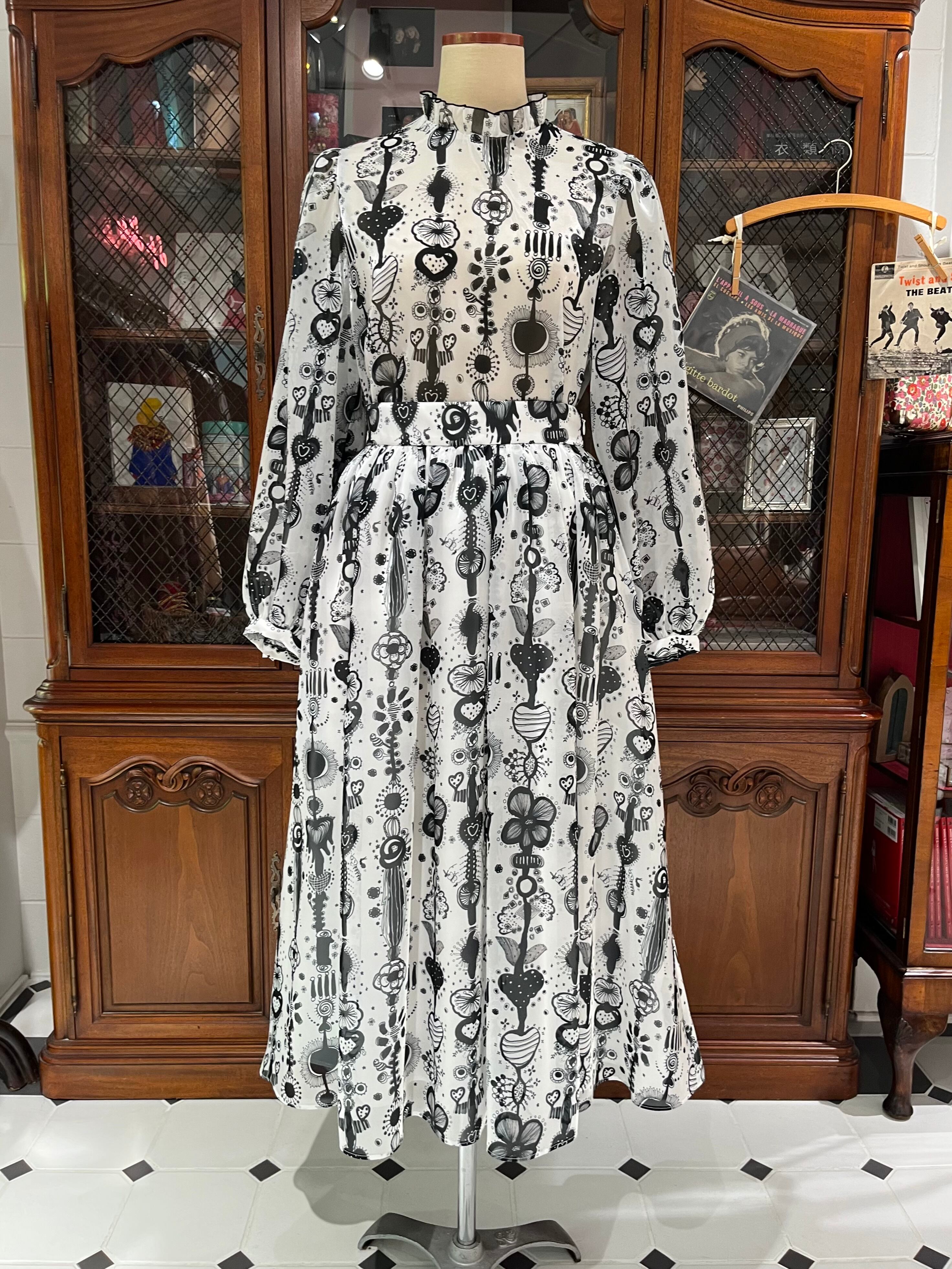 デザイナーアートワークプリントのオリジナルテキスタイルのボリュームスカートが登場。