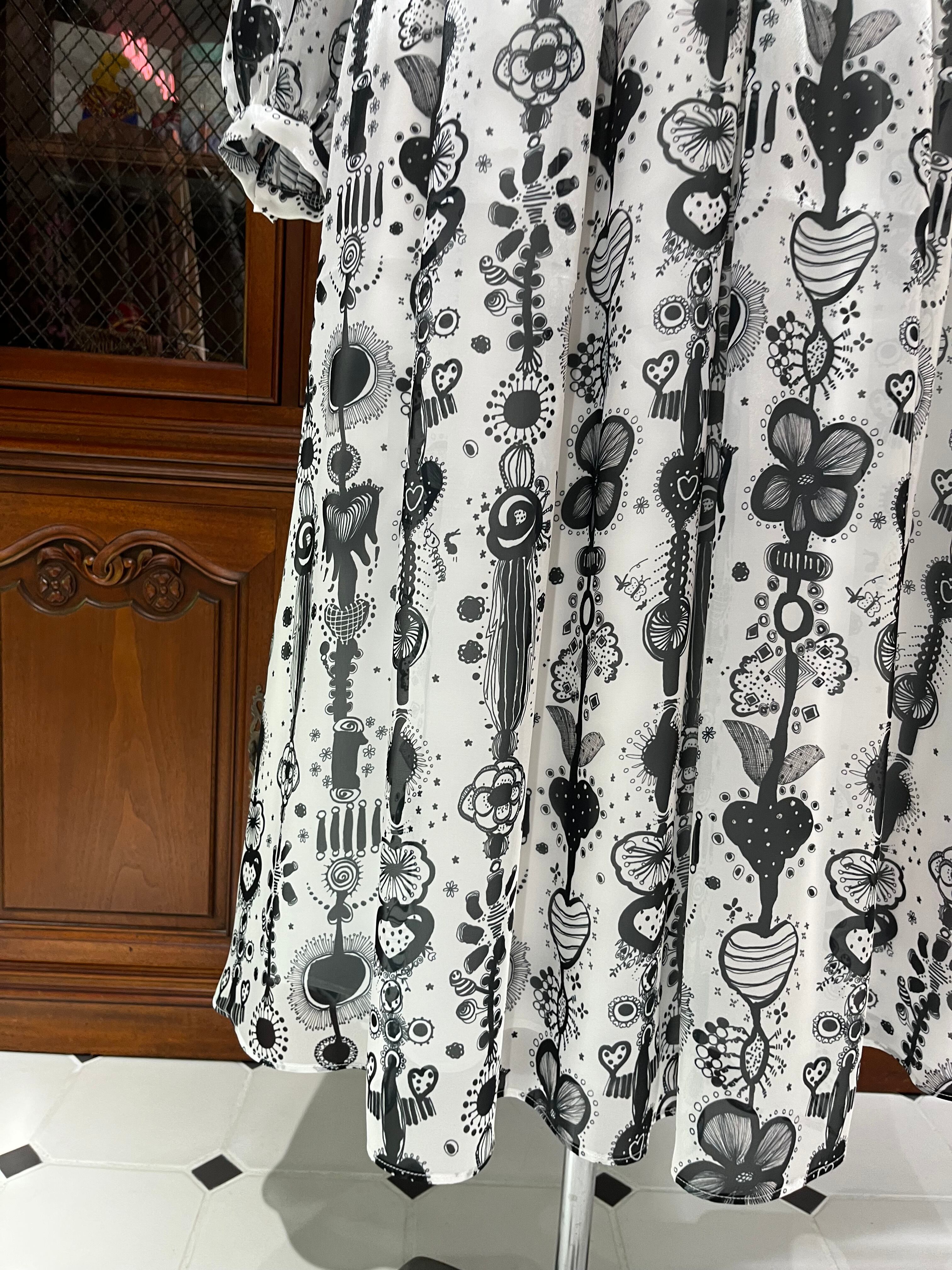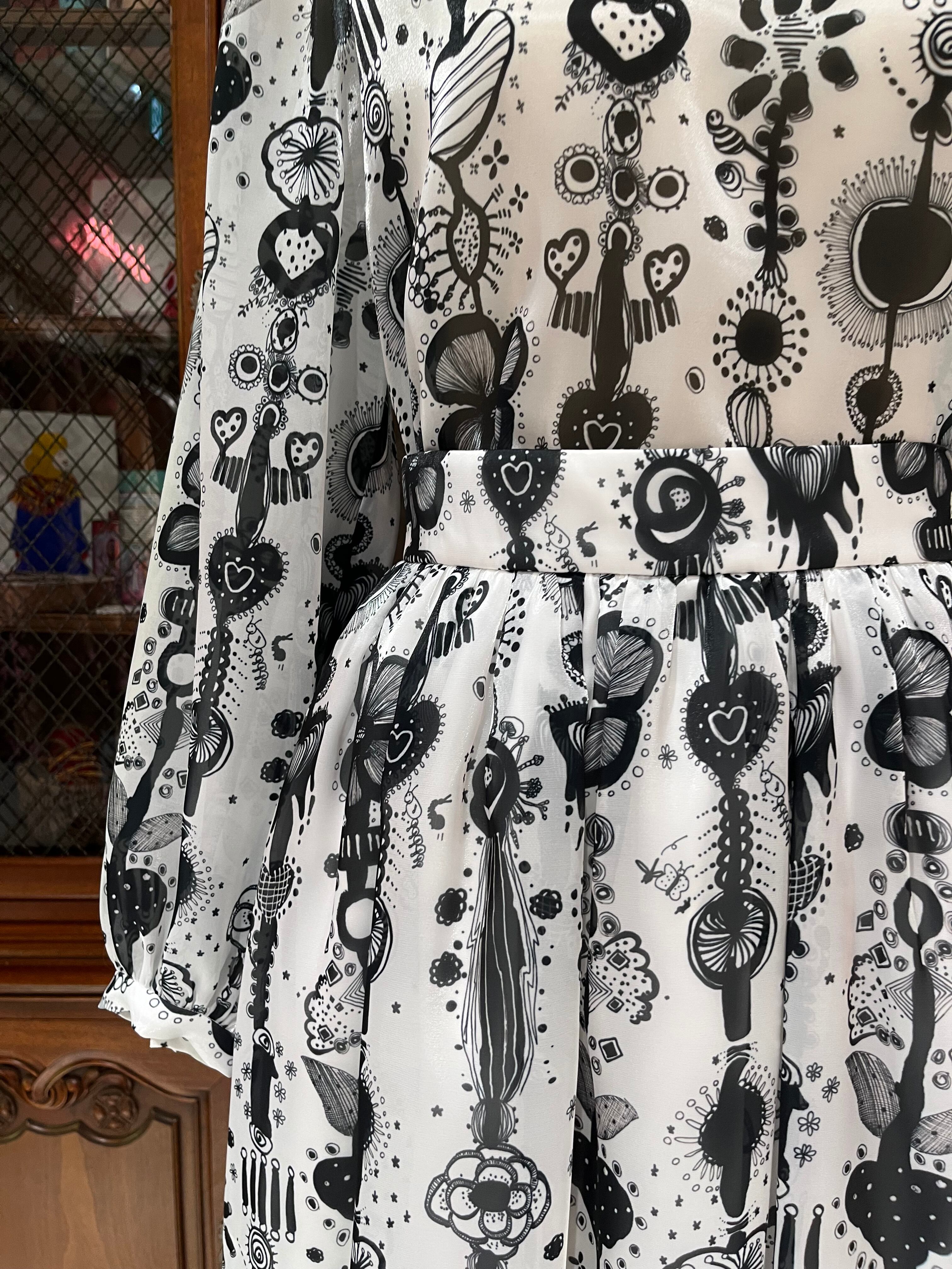 アートワークをプリントしたお生地は、ブランド初となるオーガンジー生地です。
