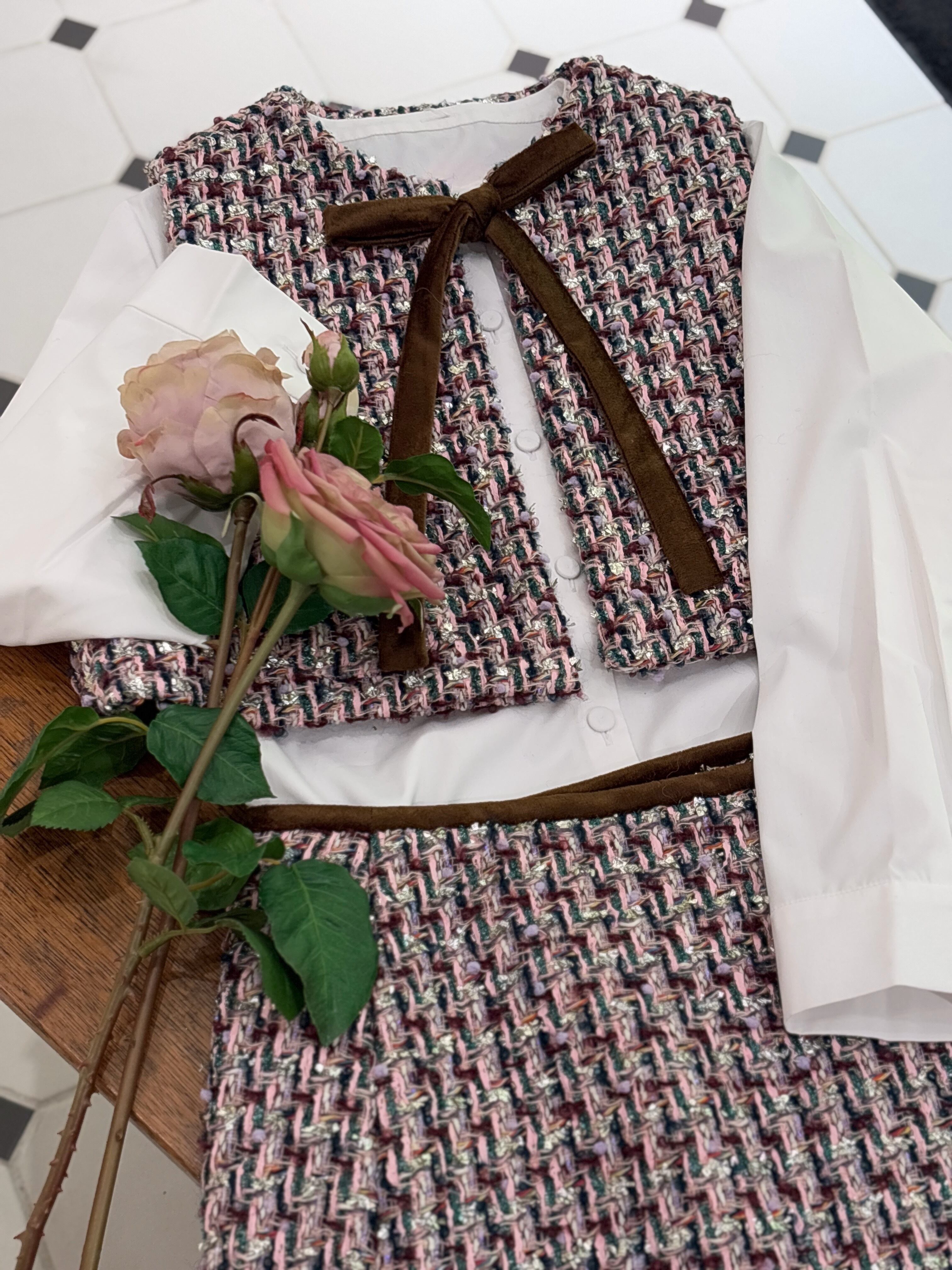 【2025年秋冬コレクション】ラップ・スカート ピンクツイード×茶ヴェルヴェット