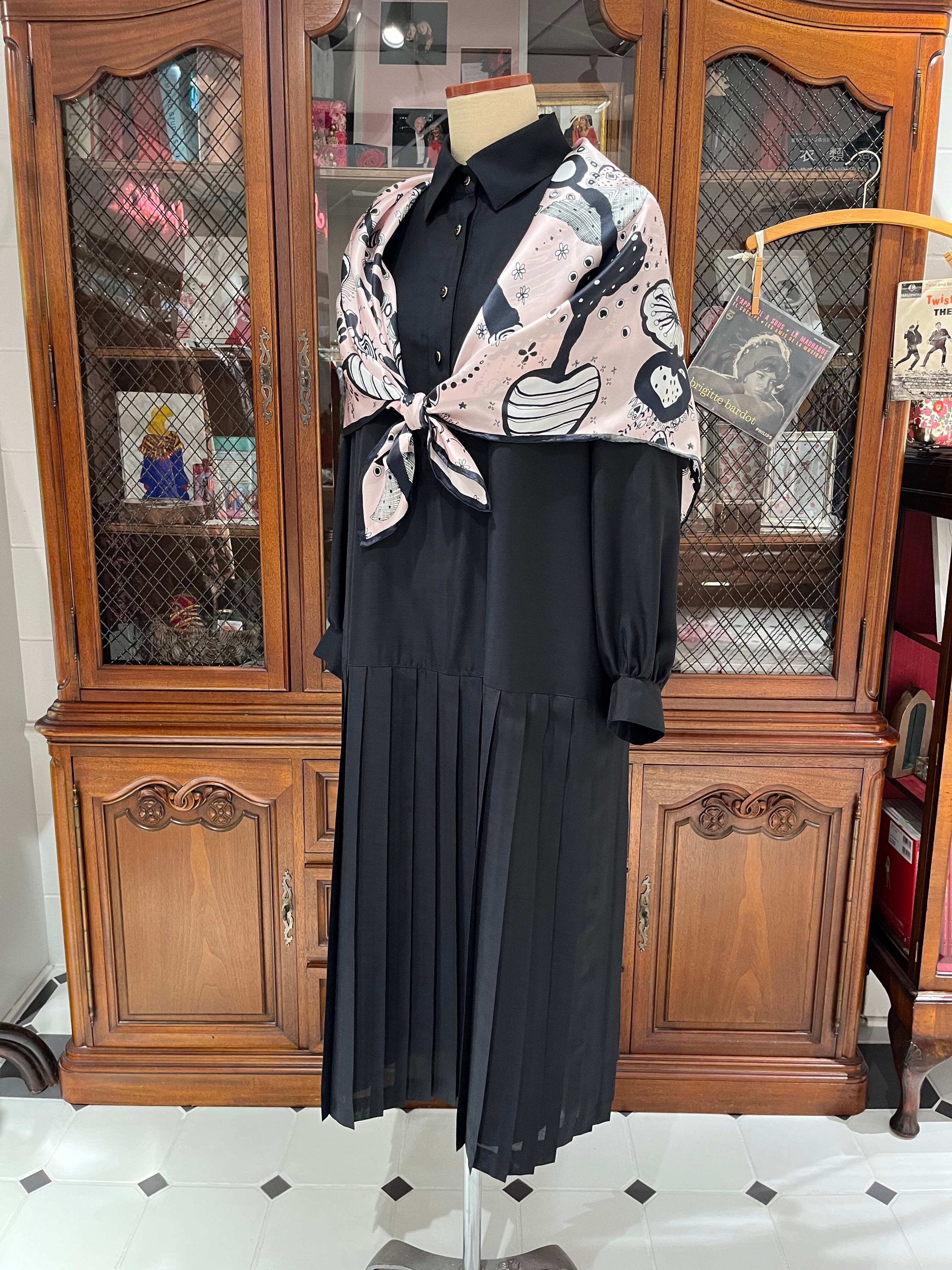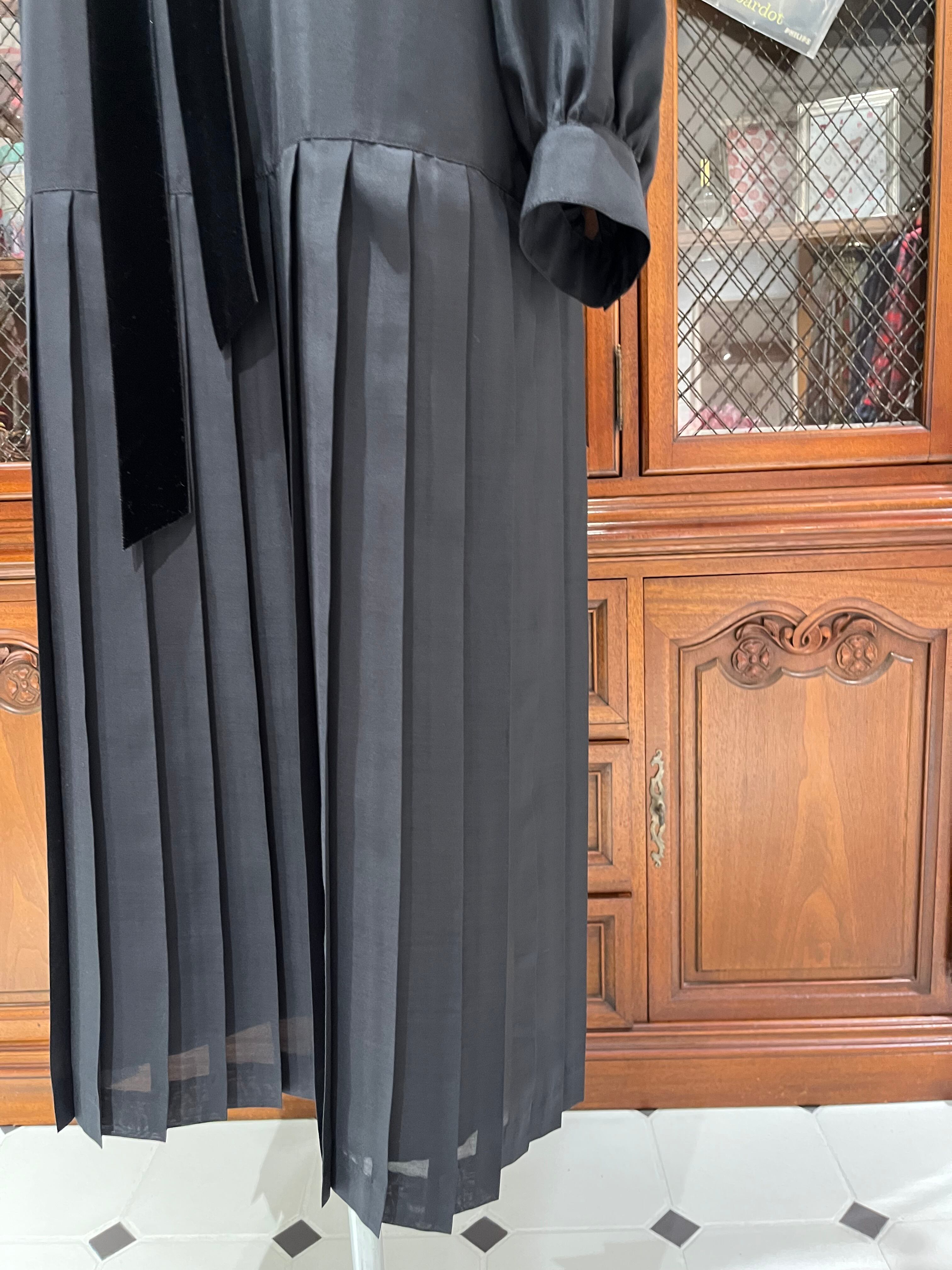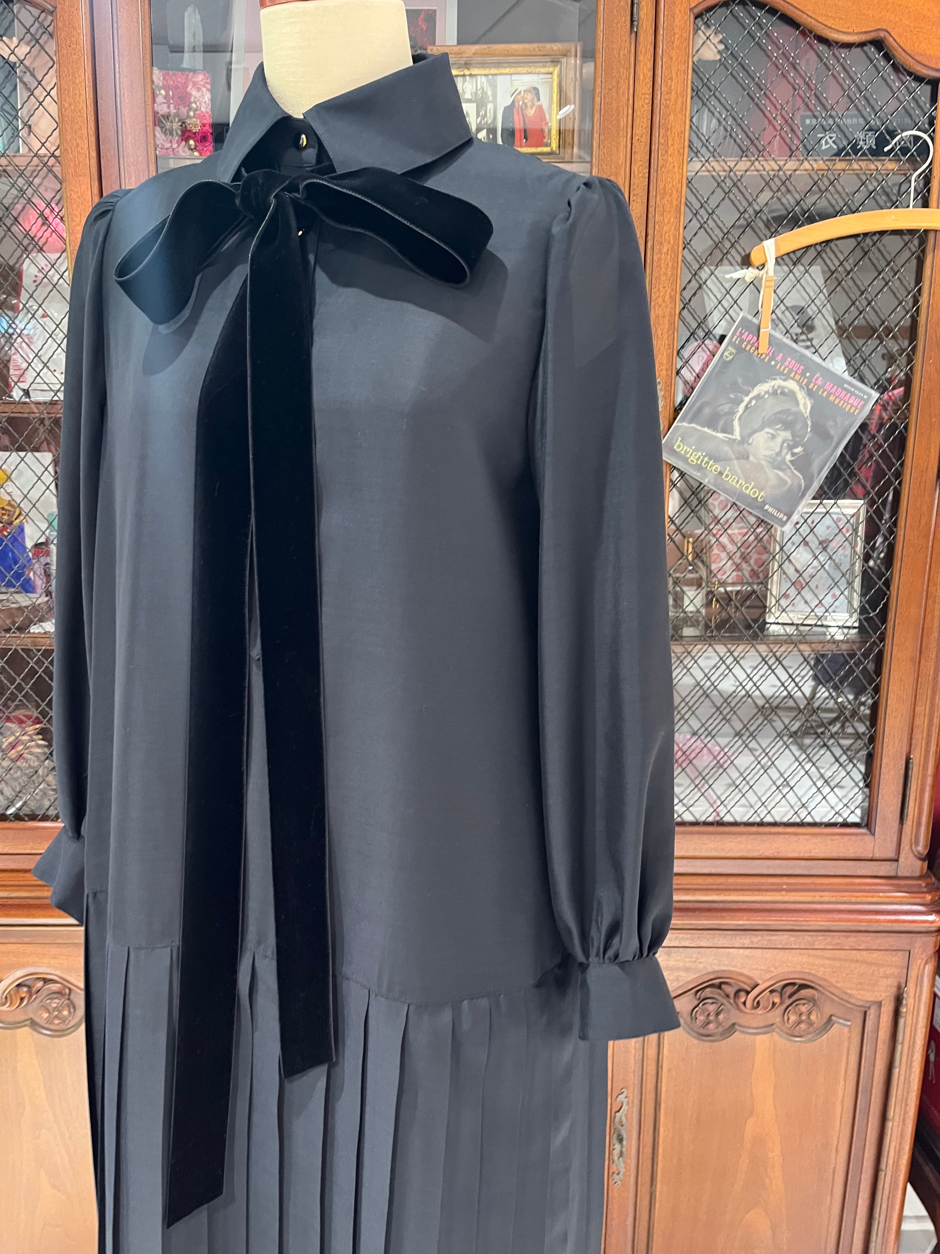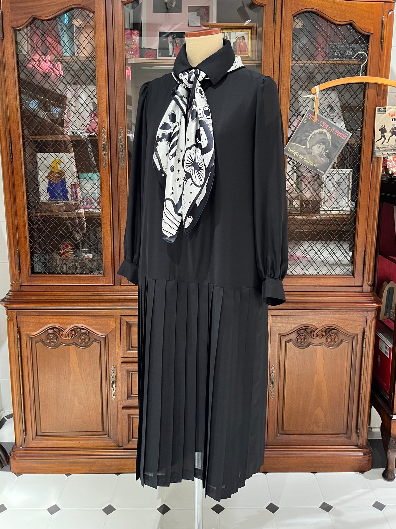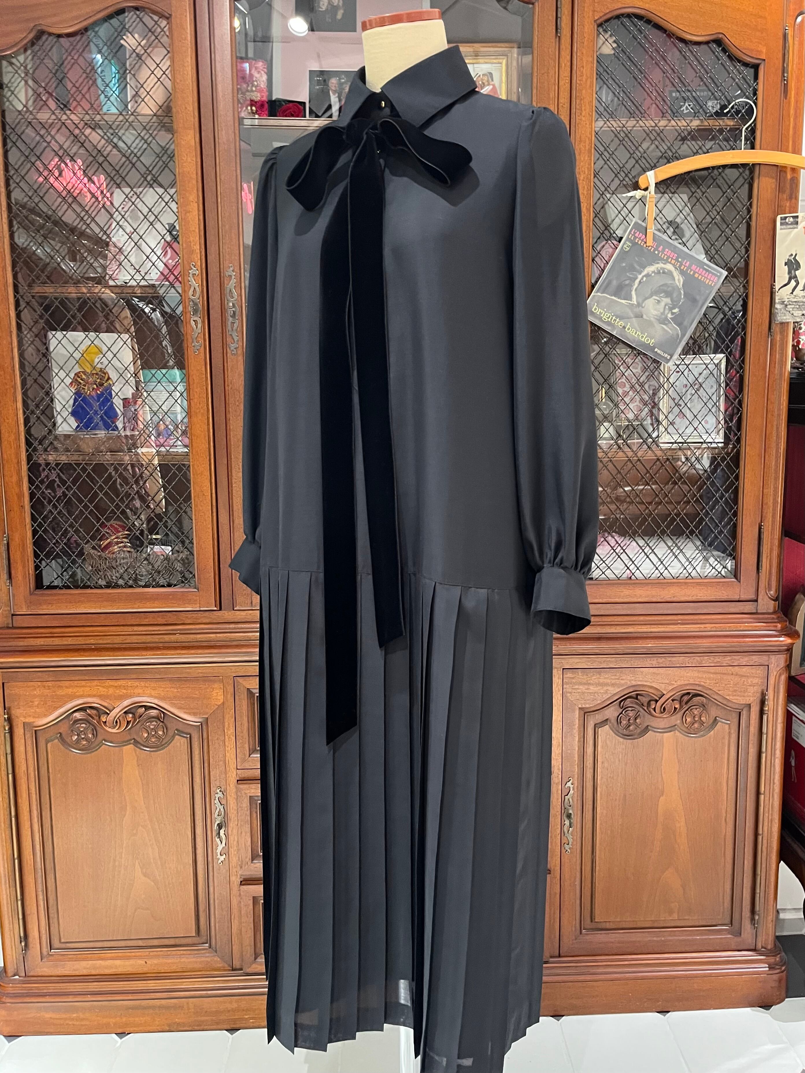大人っぽく、クラシカルな印象もある美しいシルエット、可愛らしすぎない大人な印象となるローウエスト切り替えのプリーツが素敵です。