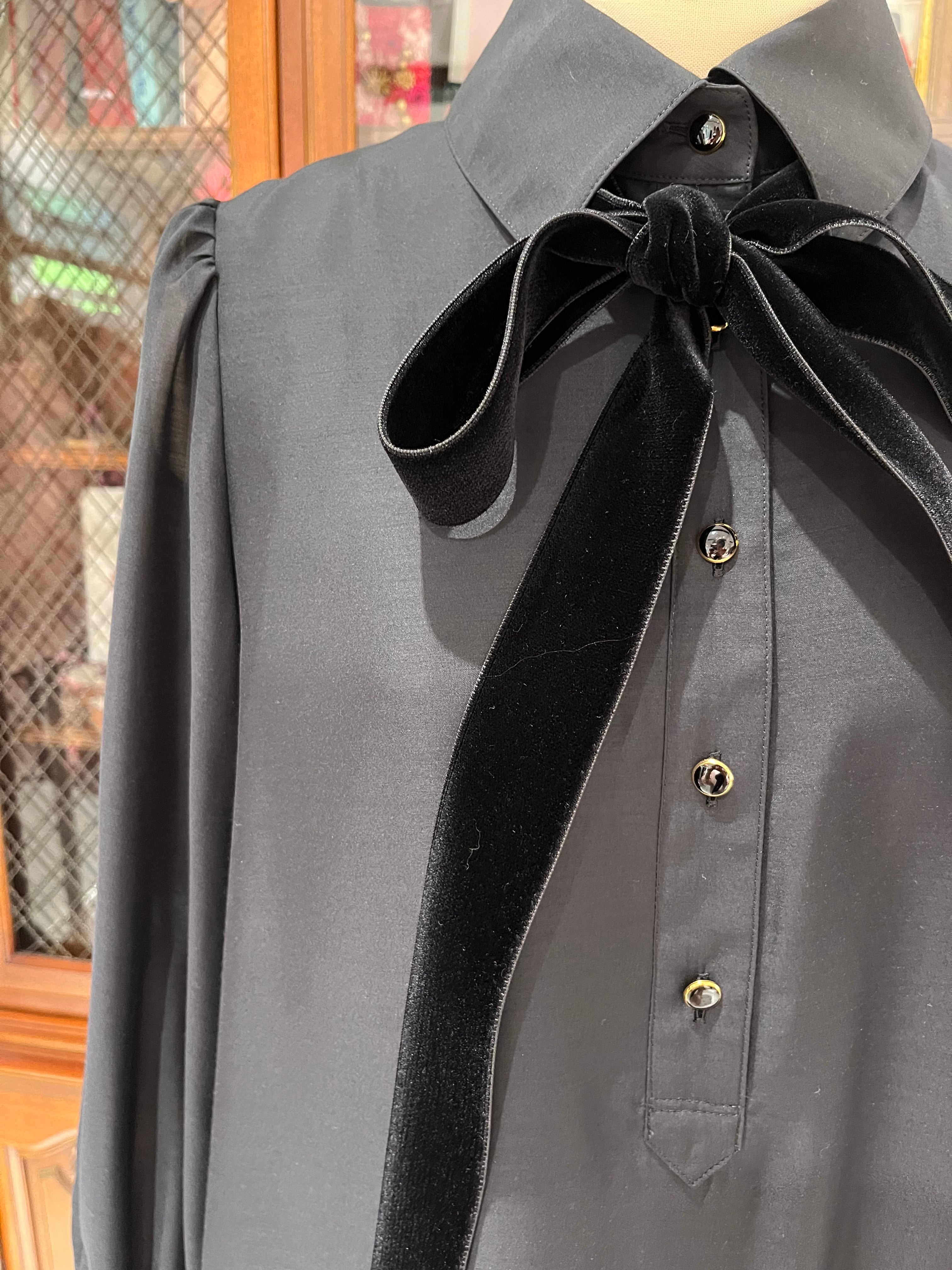 高級感のある上質なヴェルヴェットのおリボンのコントラストは、本コレクションのテーマのマスキュリン・フェミニンを表現する異素材の掛け合わせです。