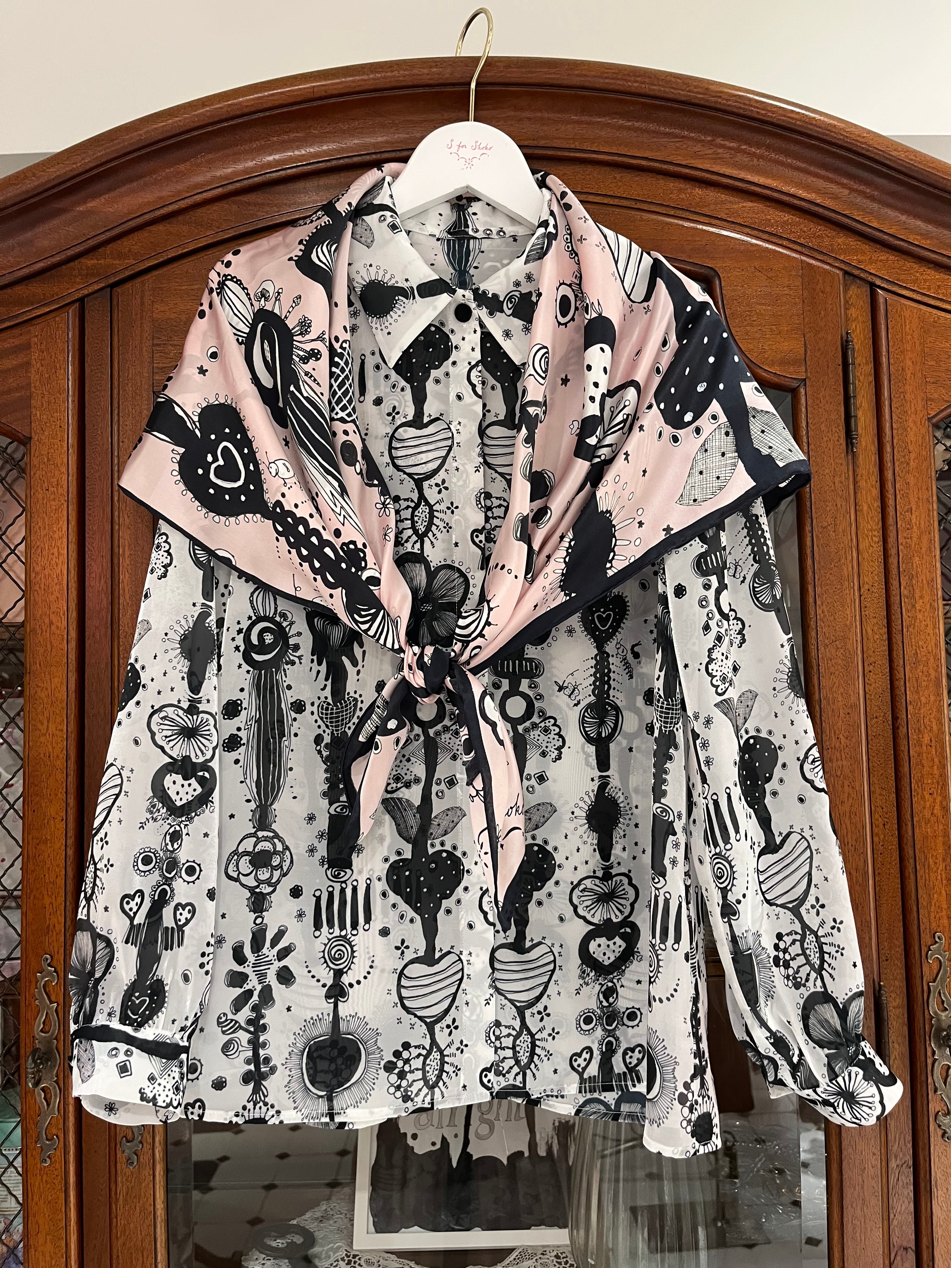 【2025年秋冬コレクション】オリジナル柄小襟シャツブラウス