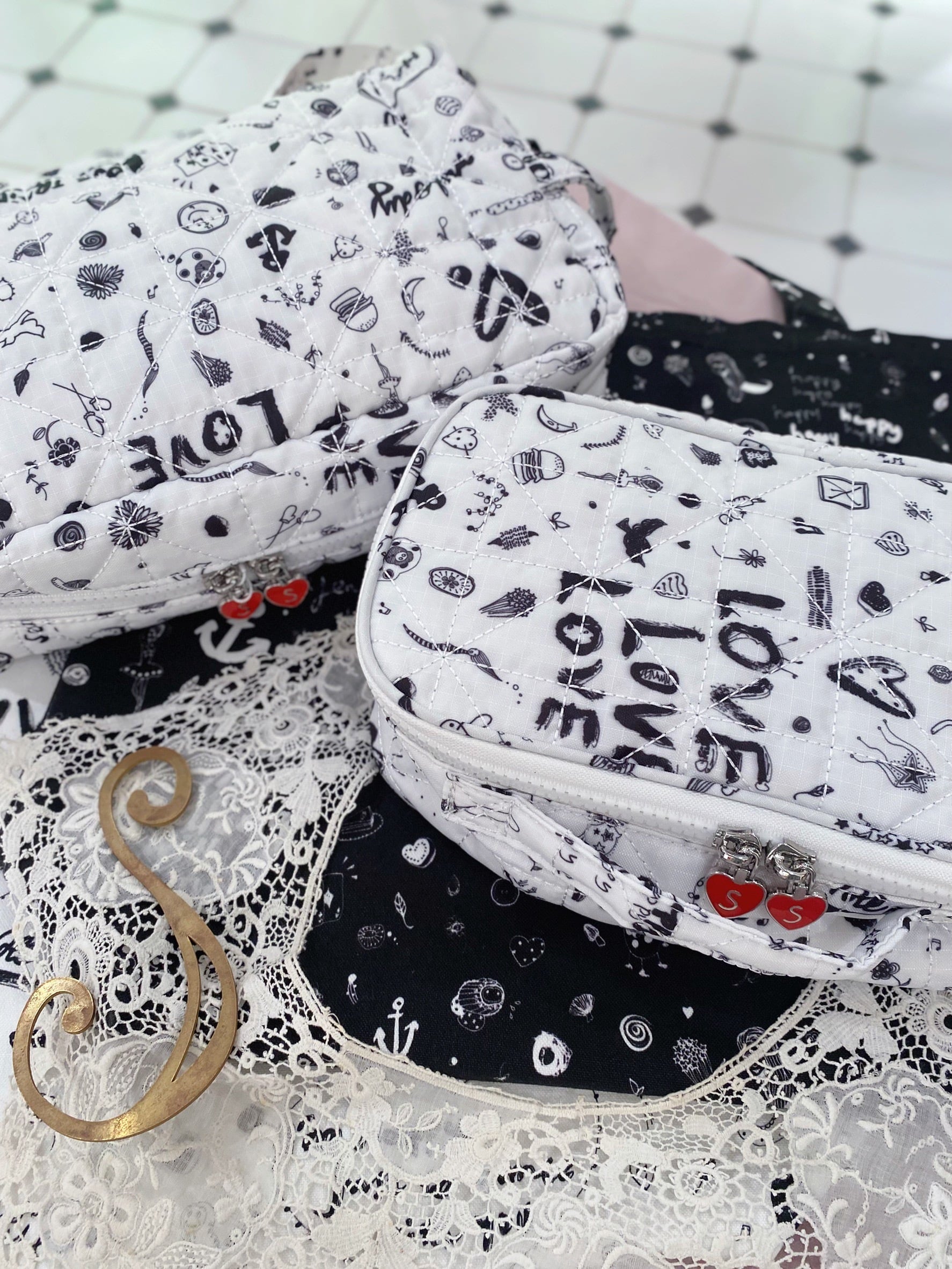 ジッパーのハートチャームには“S”が刻印され、