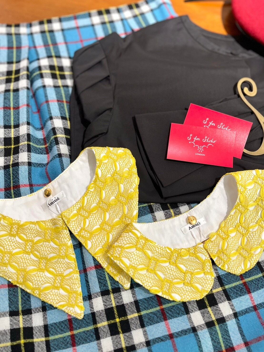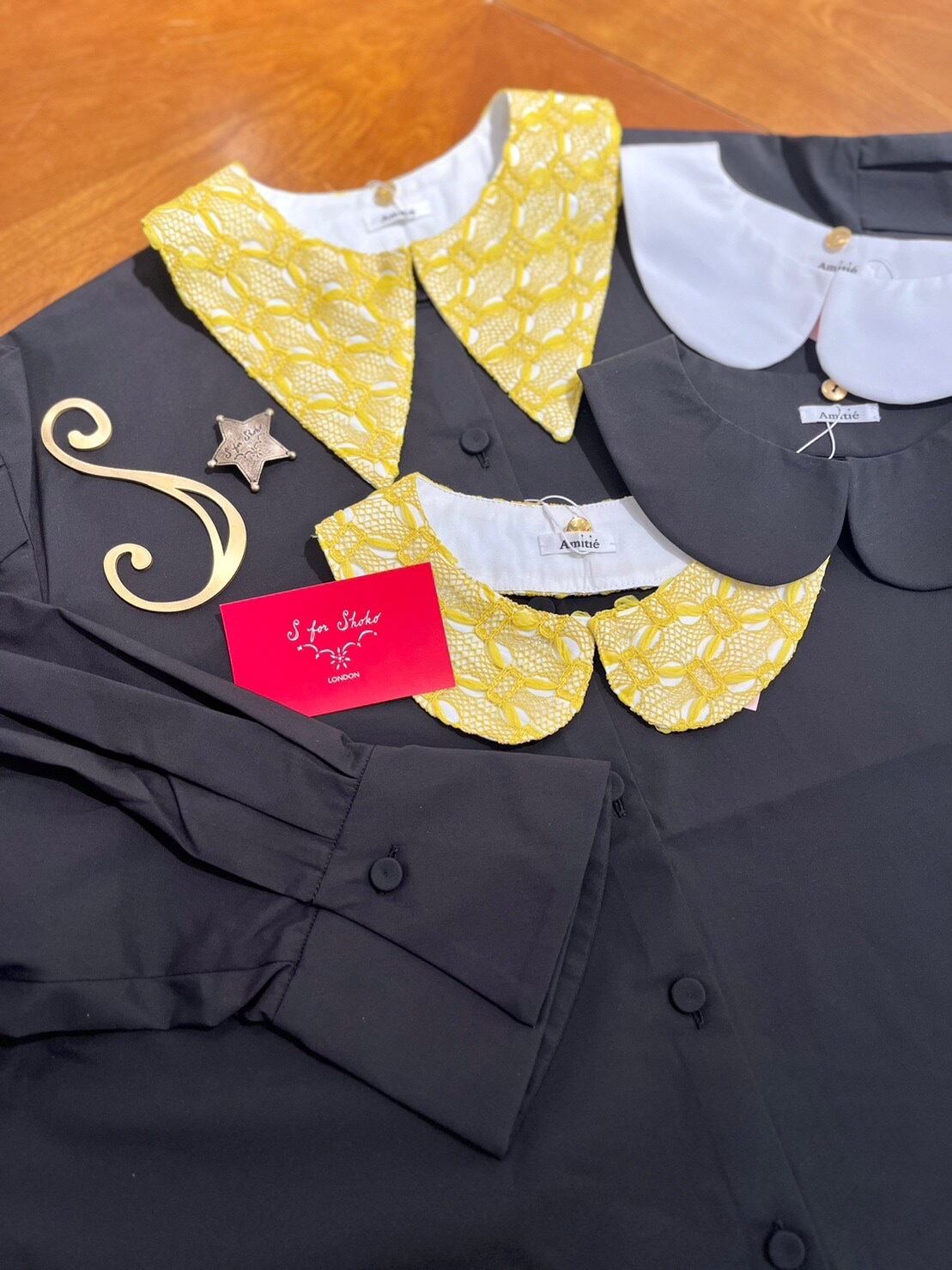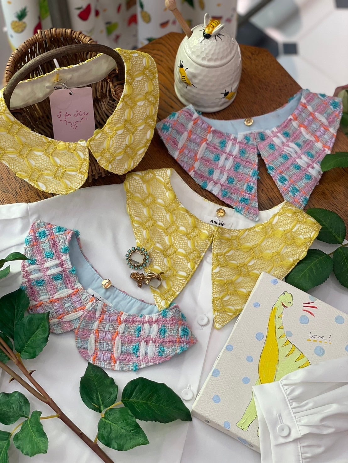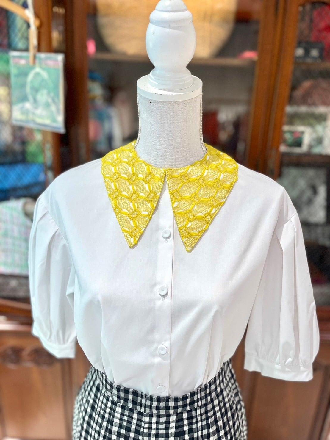 Amitiéでは、初めてのファブリックのレースのつけ襟は上品でおしゃれな印象となります。コーディネートのアクセントでもおすすめな黄色のお色は