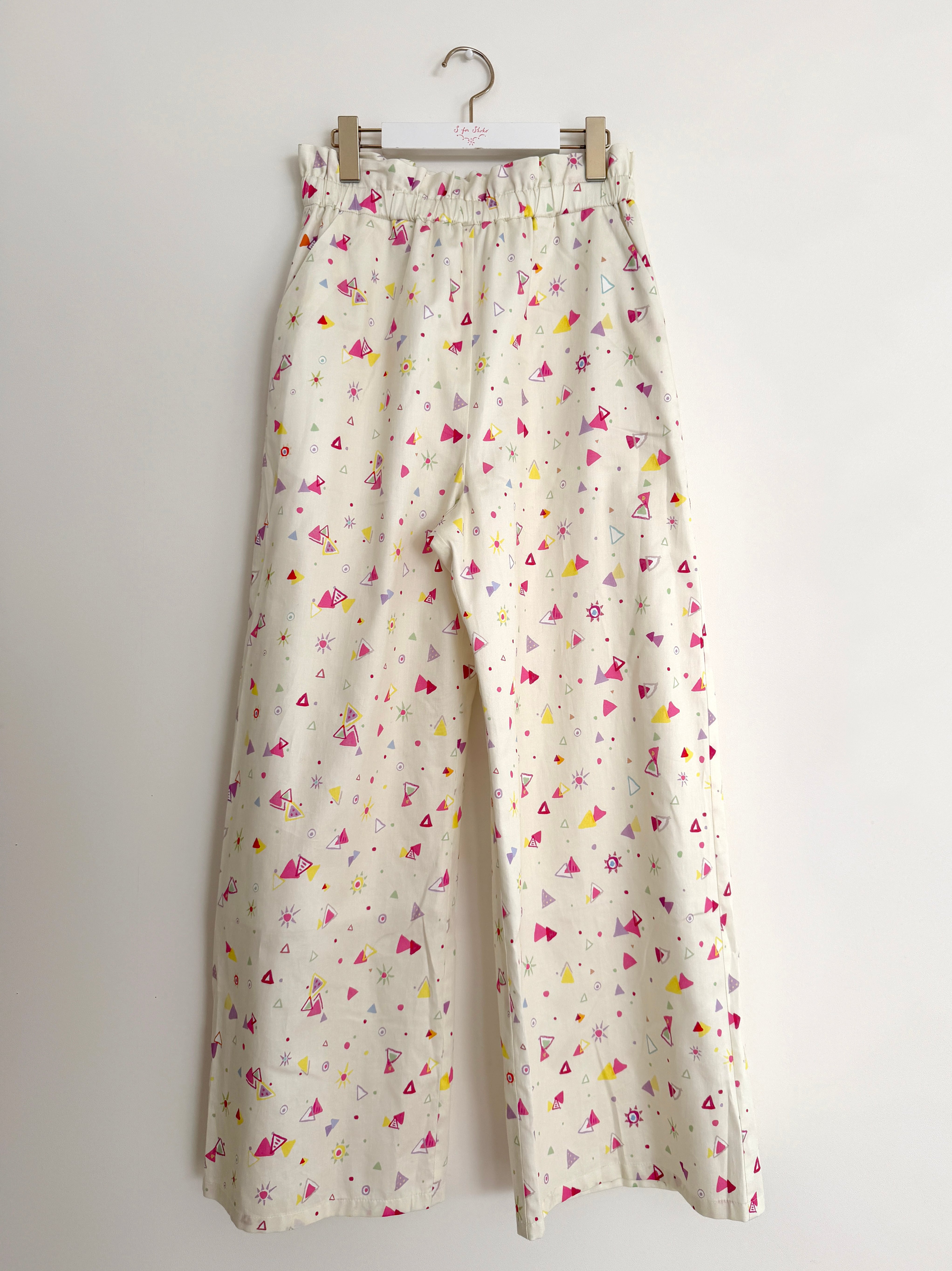 オリジナルプリントで、今季ならではのアートワークのジオメトリック柄でパンツアイテムが登場です。