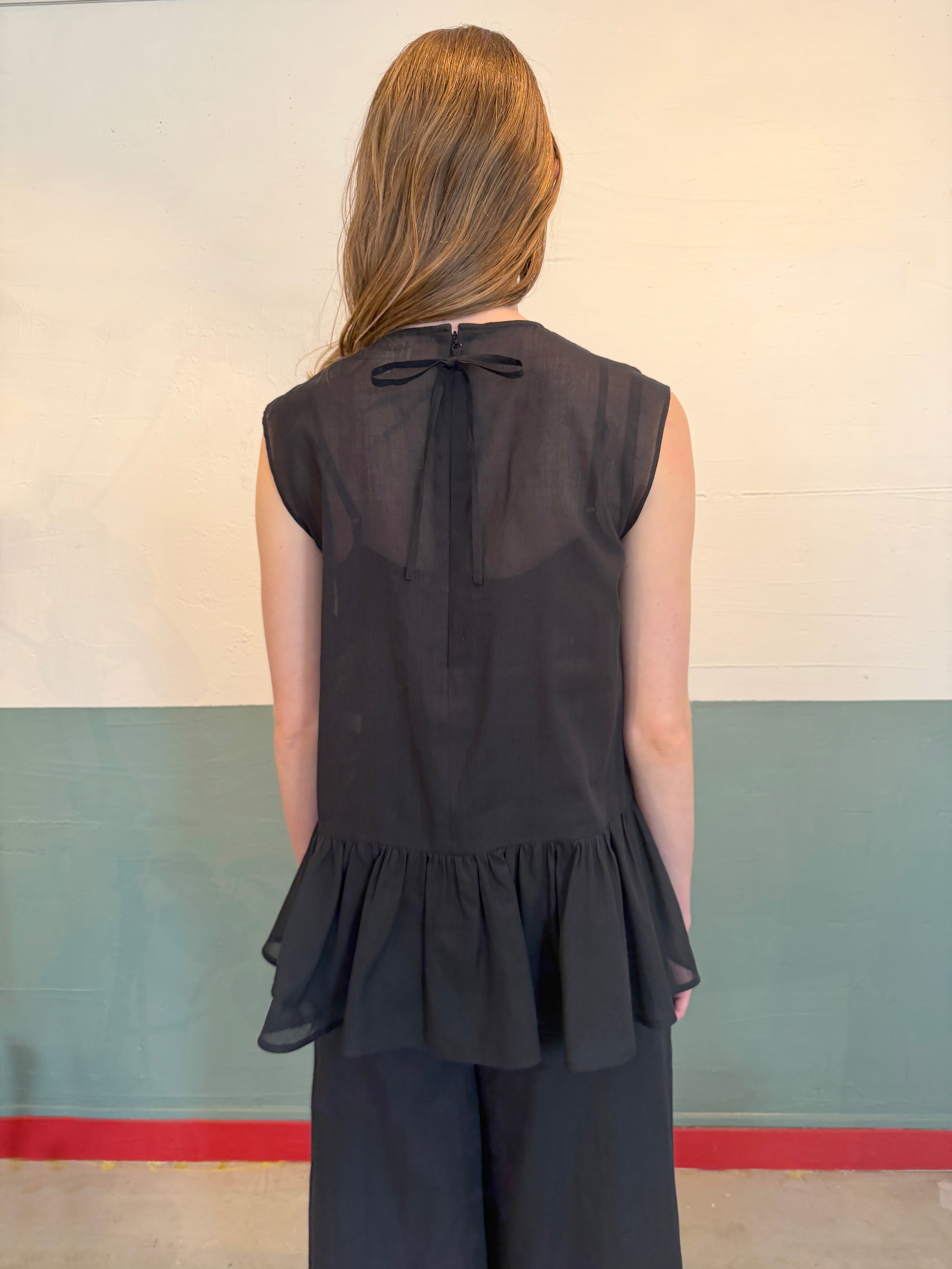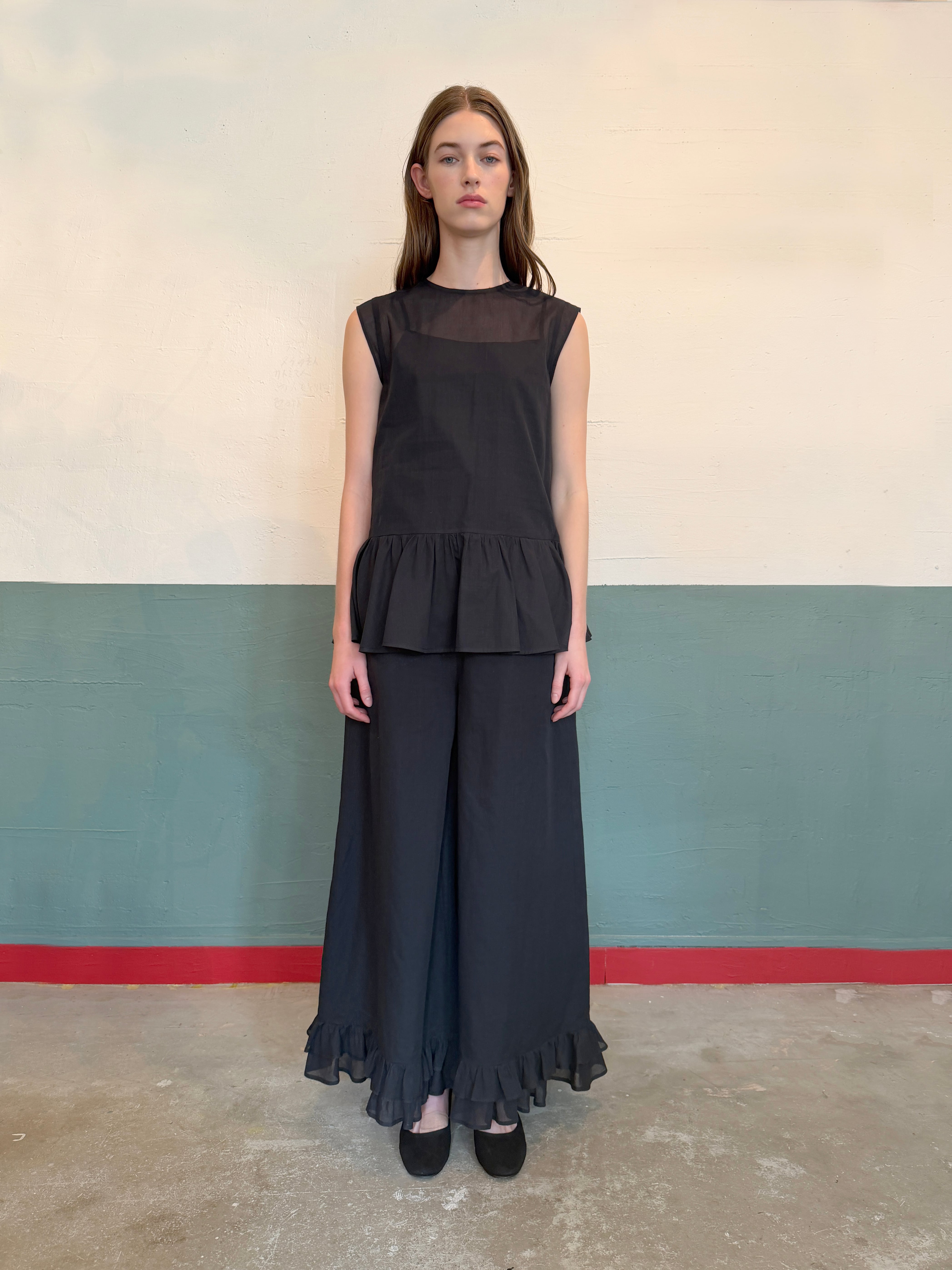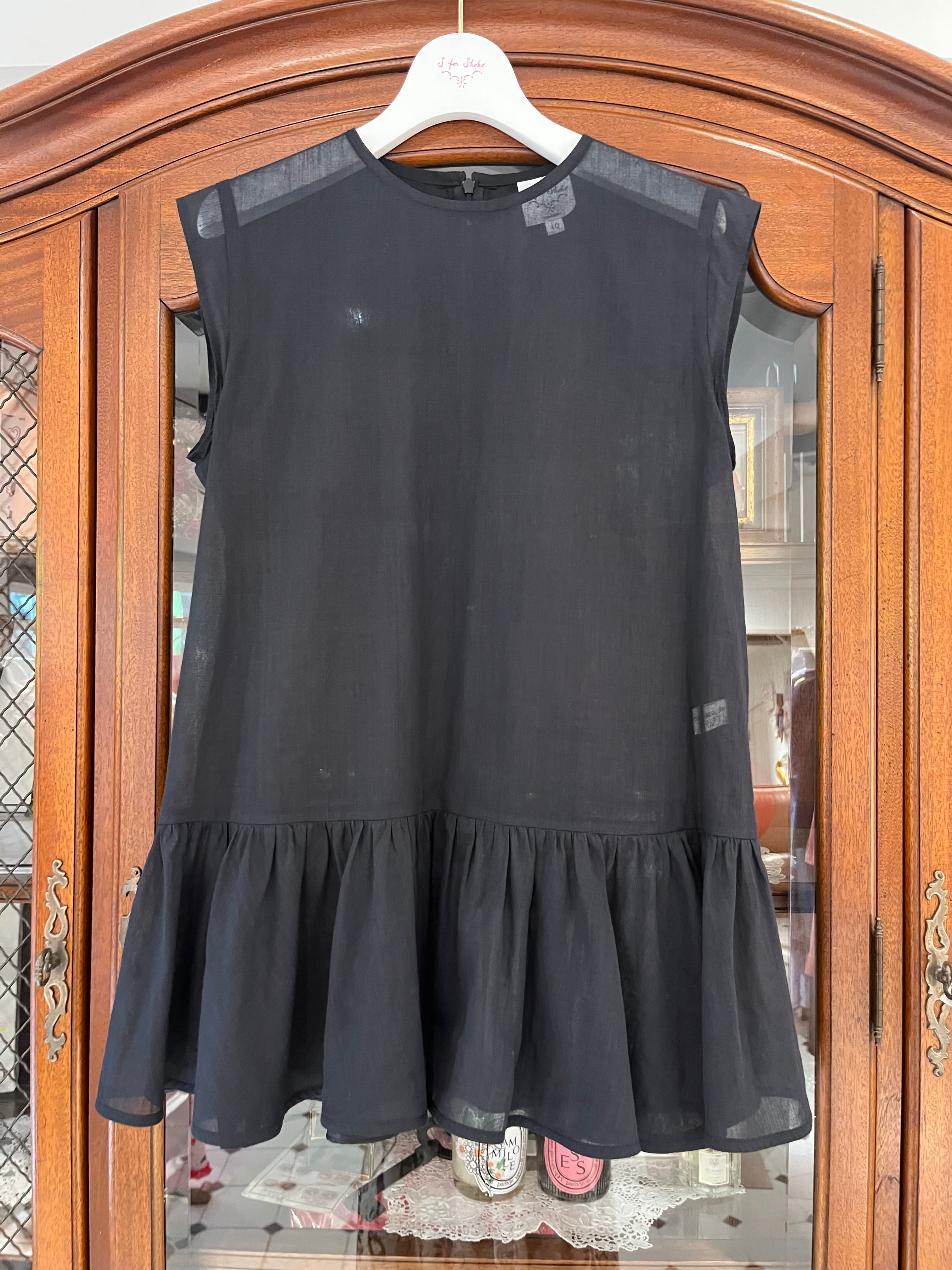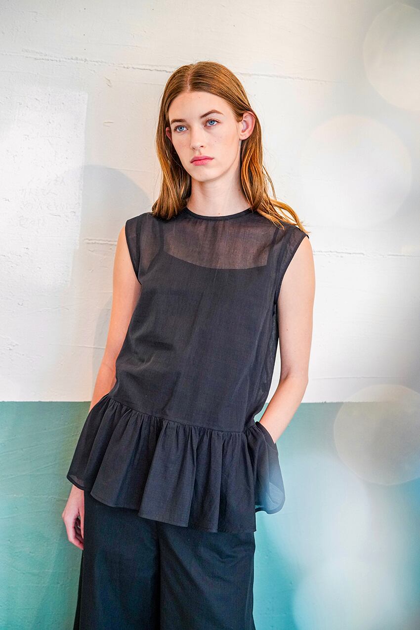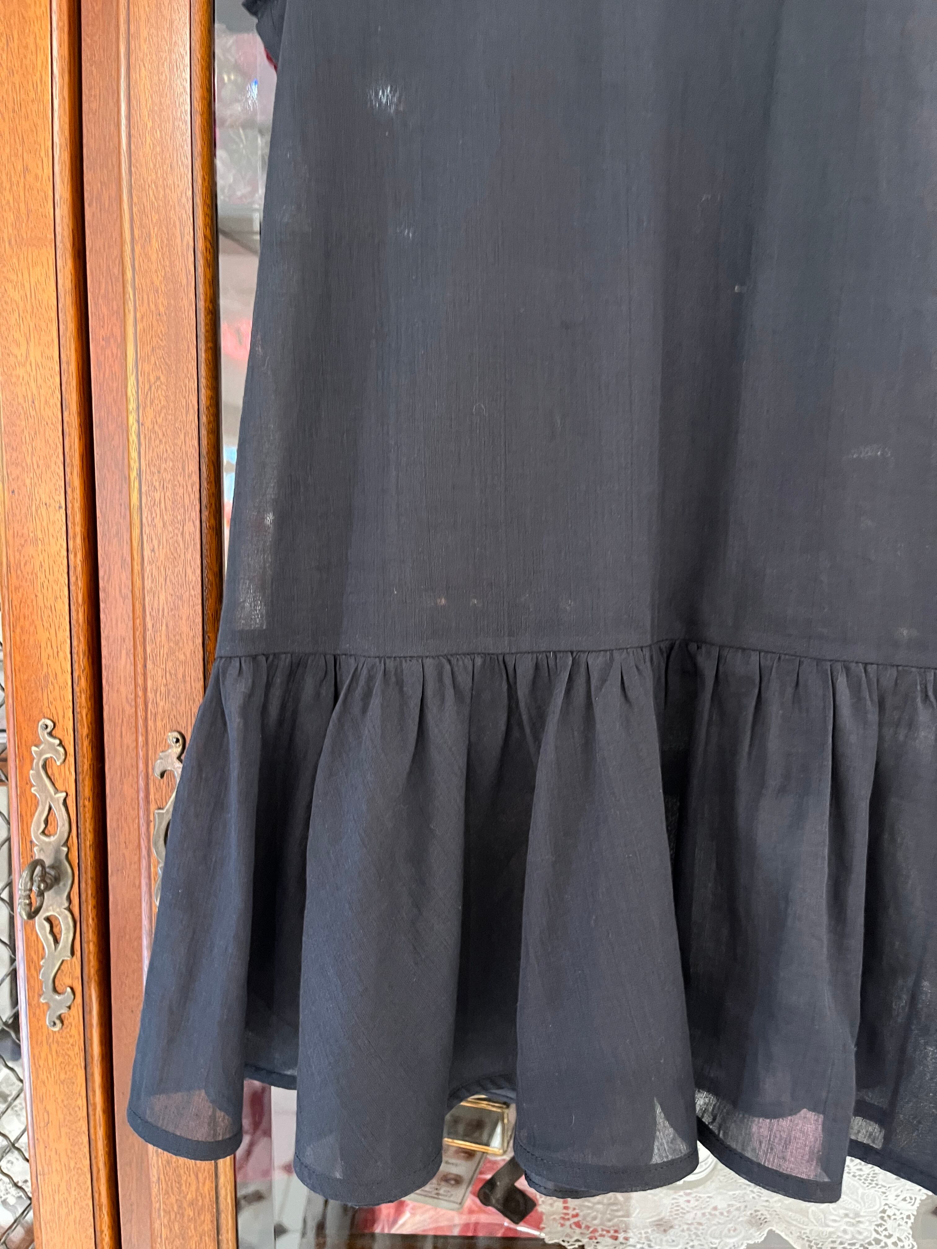 フリル・ショートスリーブトップス ブラック(透け感のある上質なインド綿)