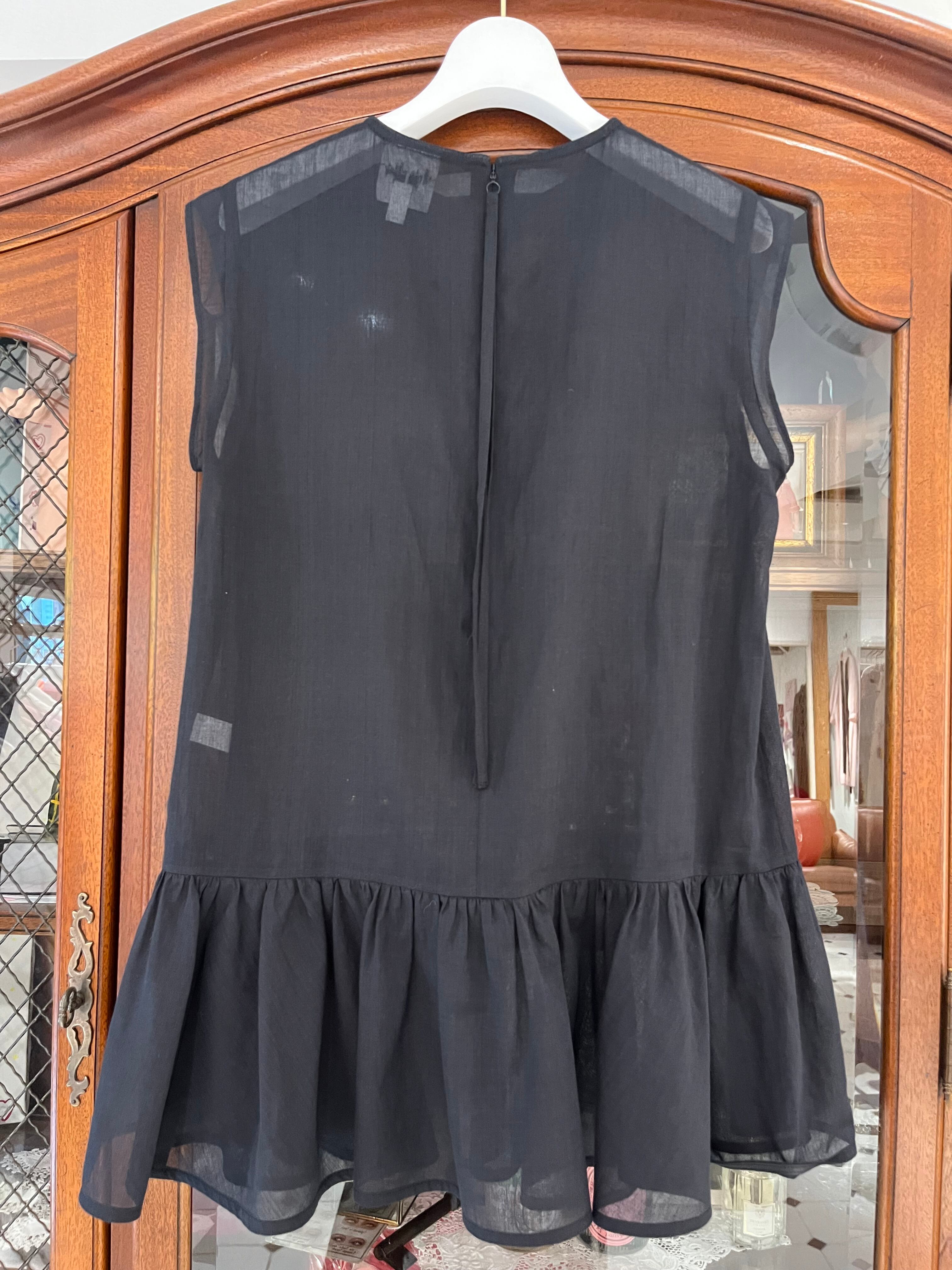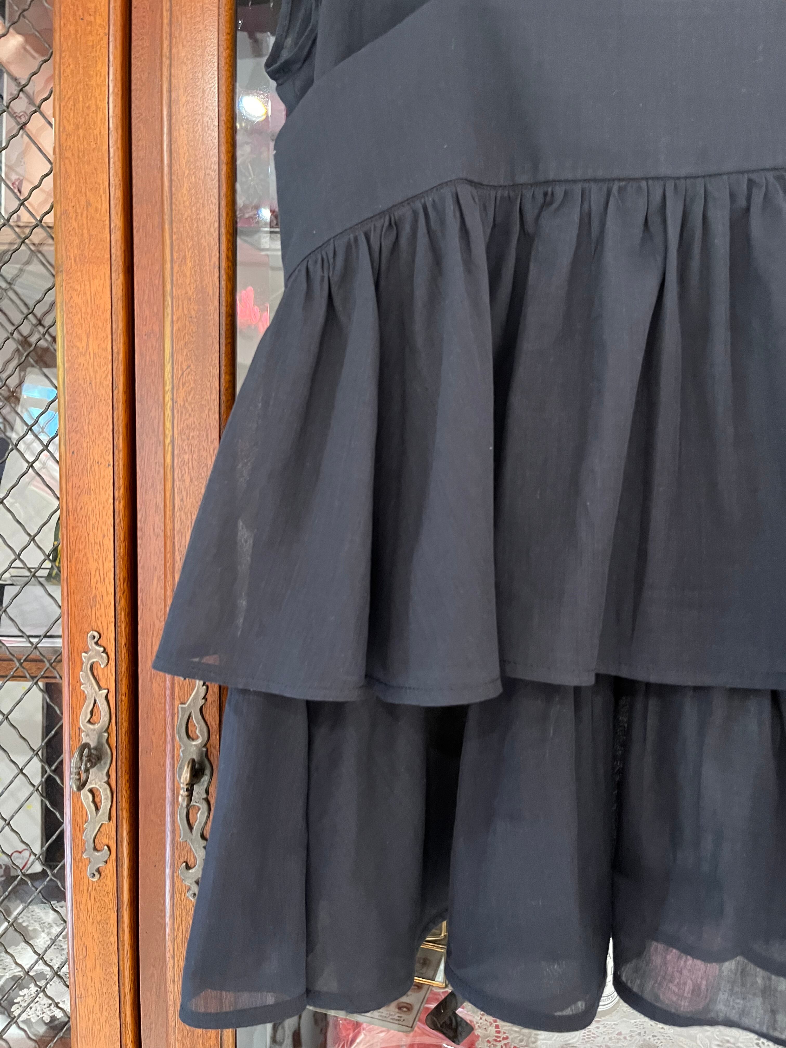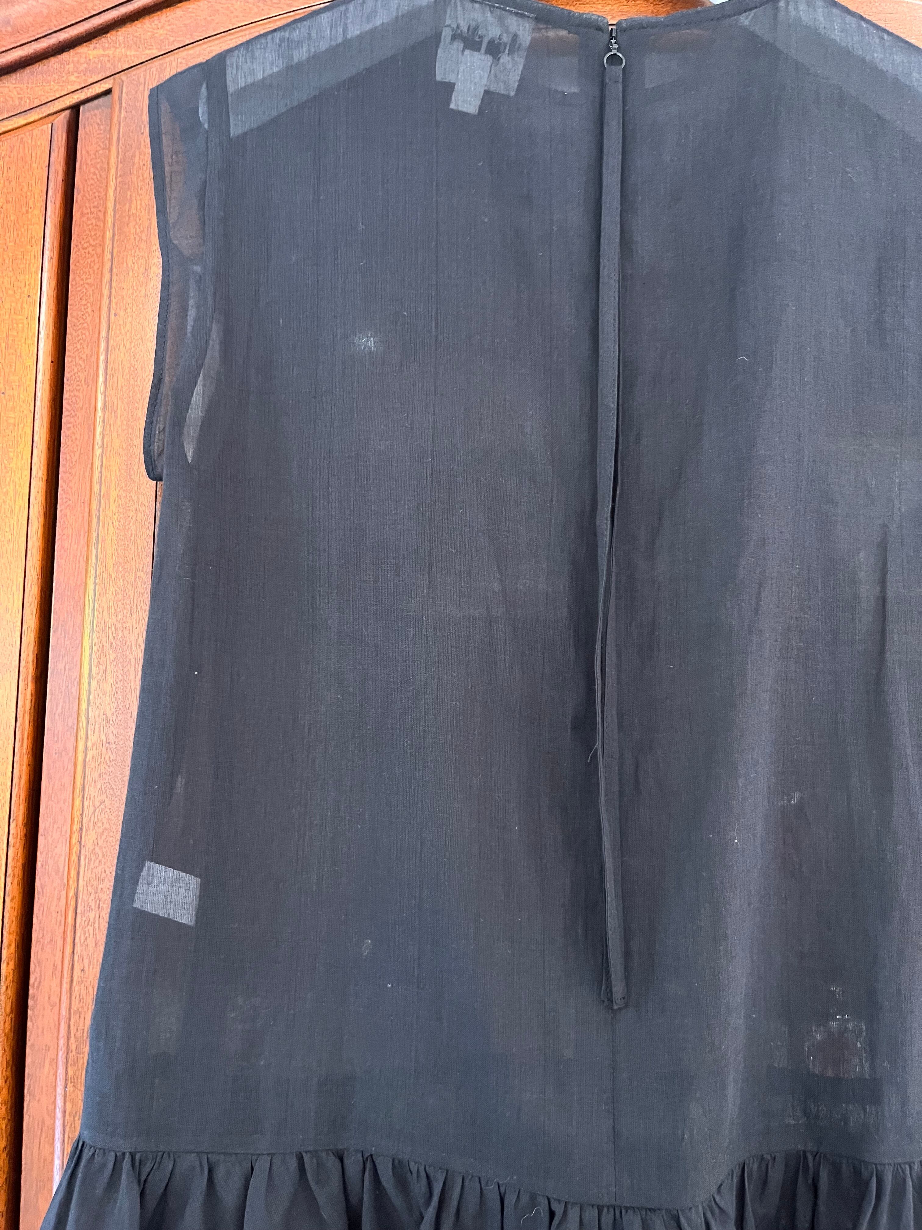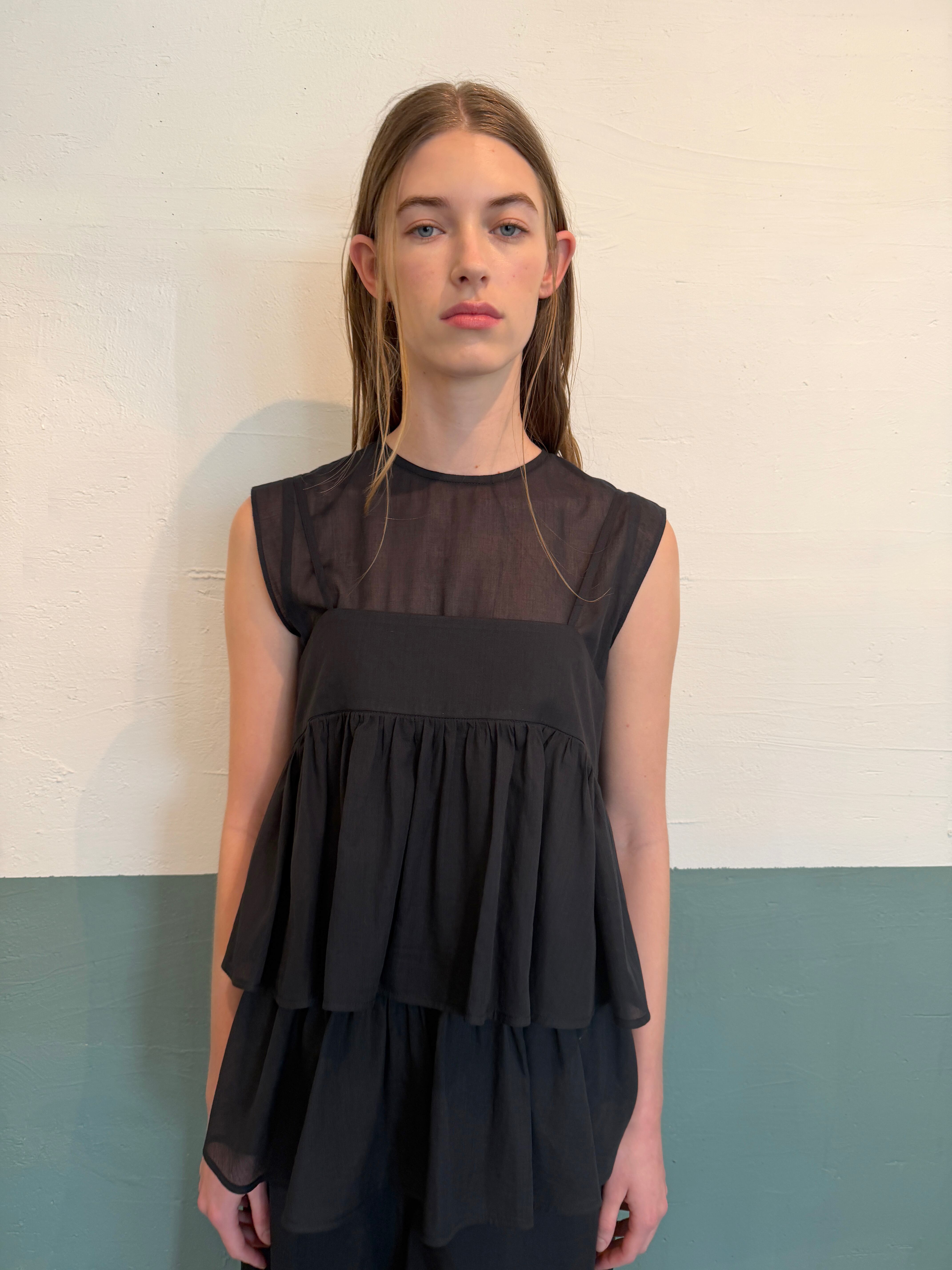 フリル・ショートスリーブトップス ブラック(透け感のある上質なインド綿)