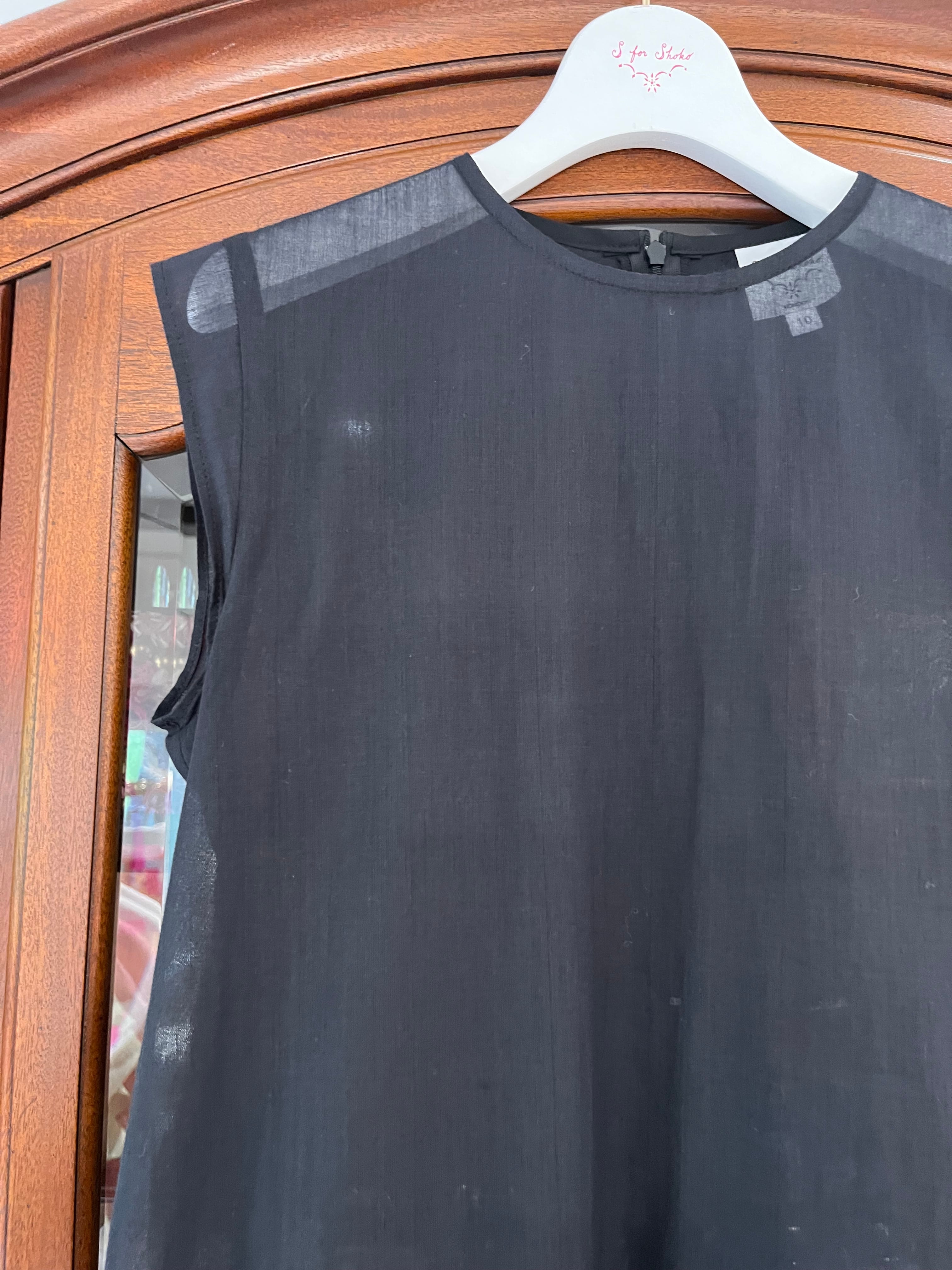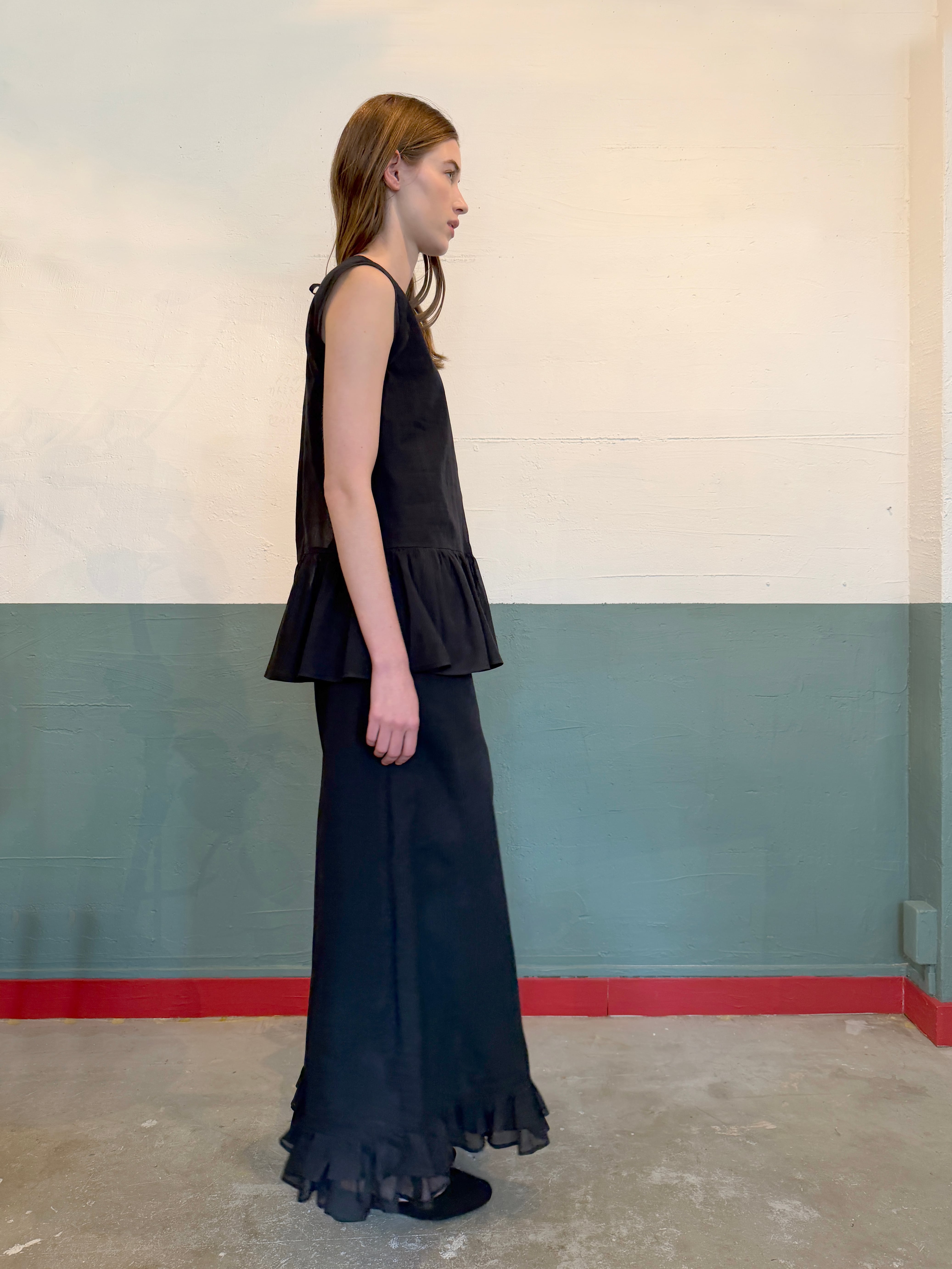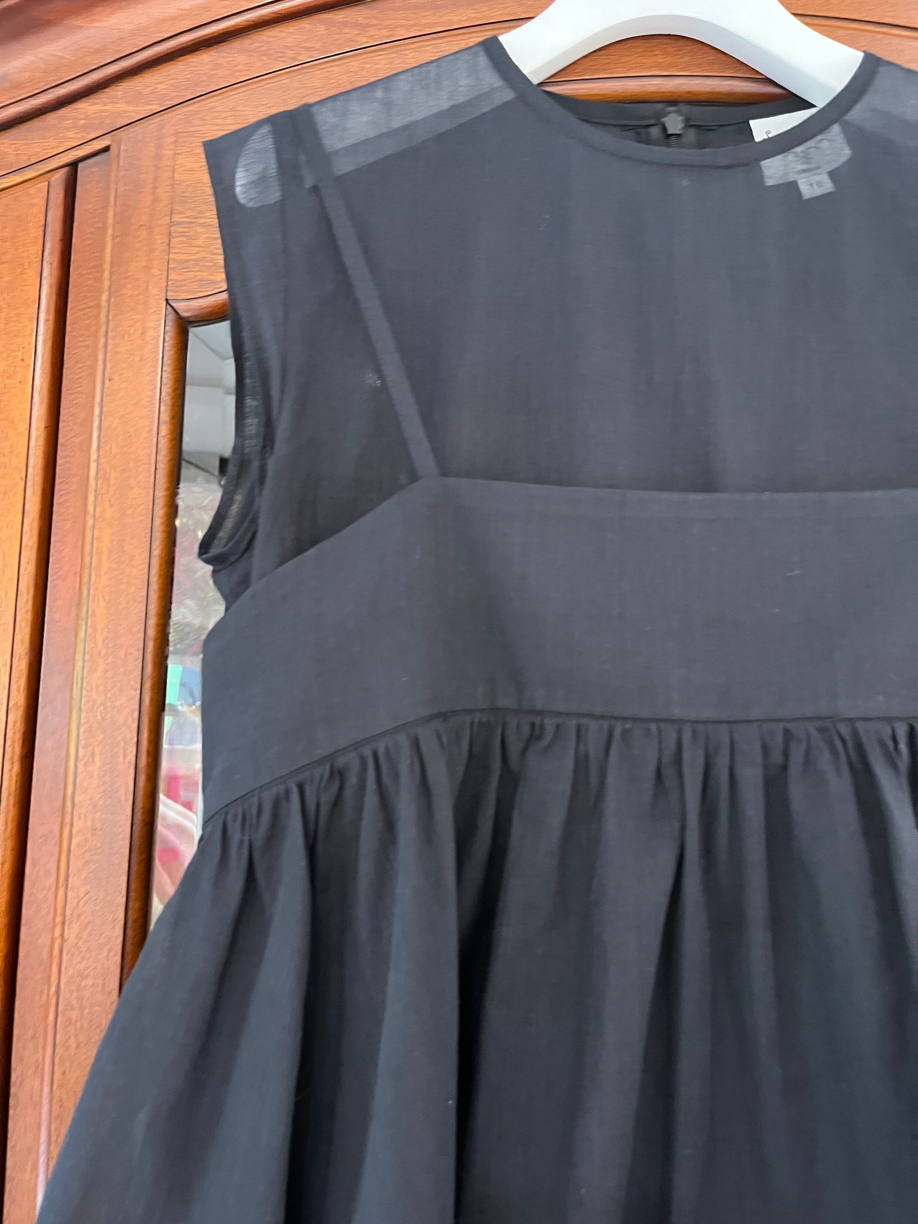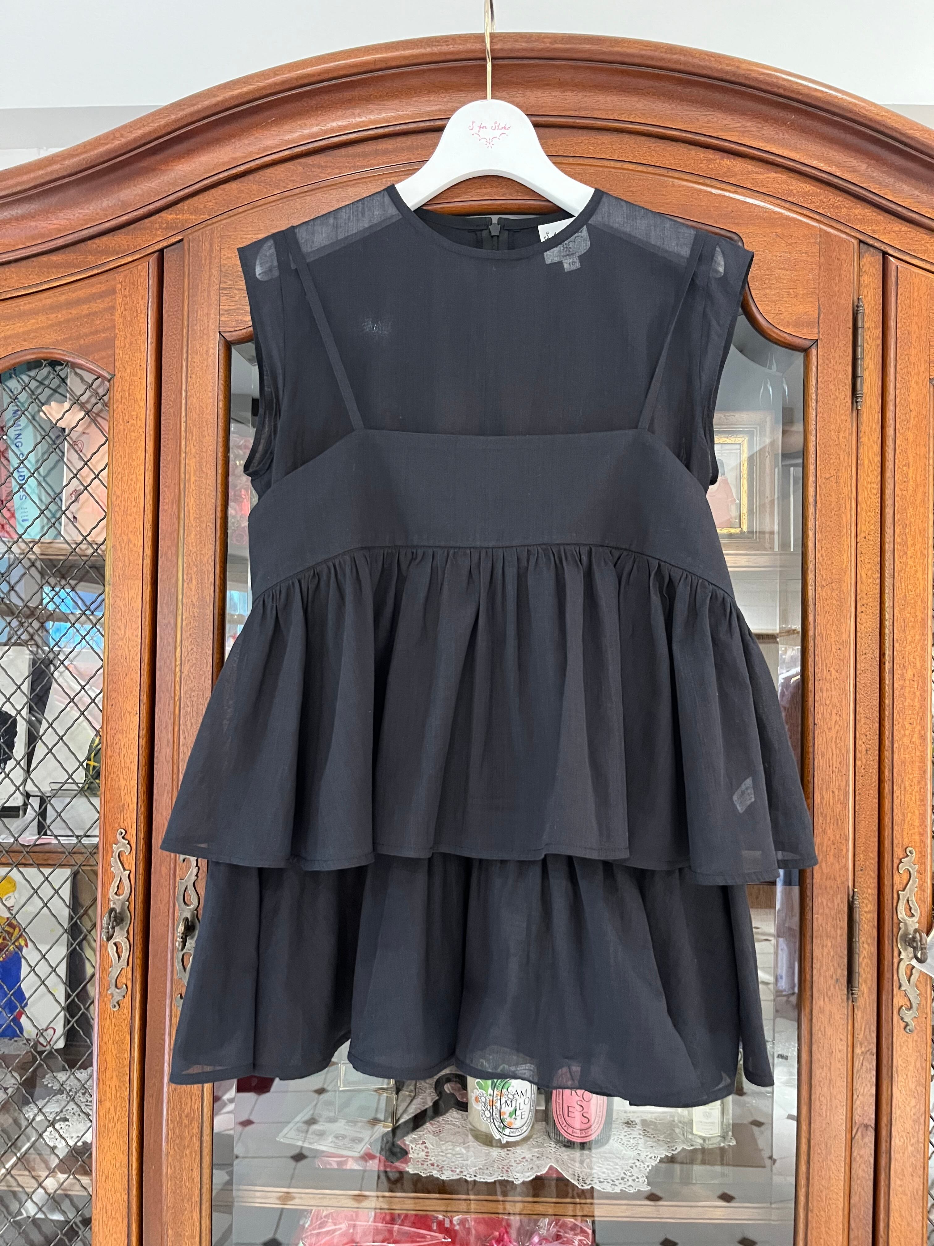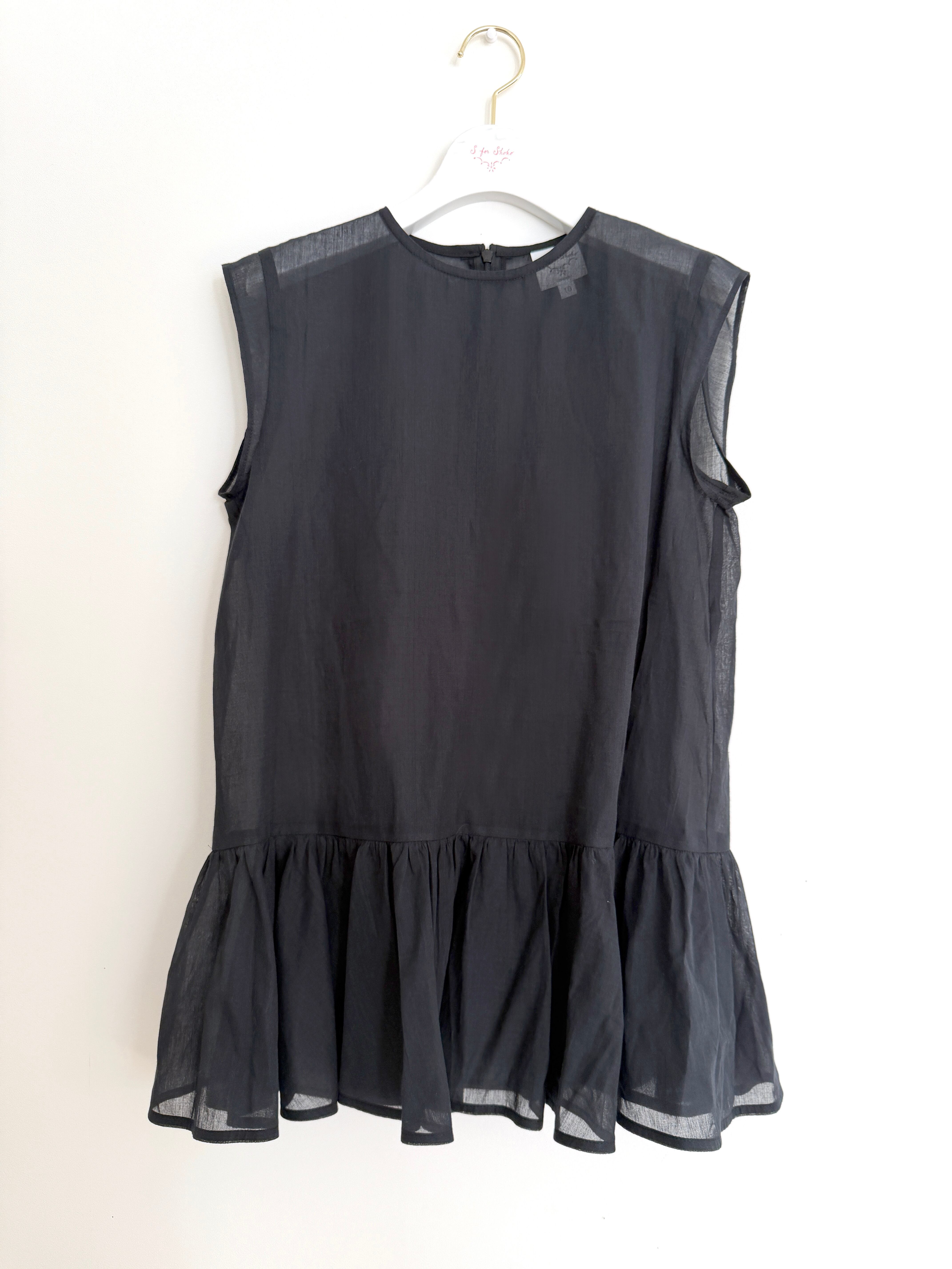 フリル・ショートスリーブトップス ブラック(透け感のある上質なインド綿)