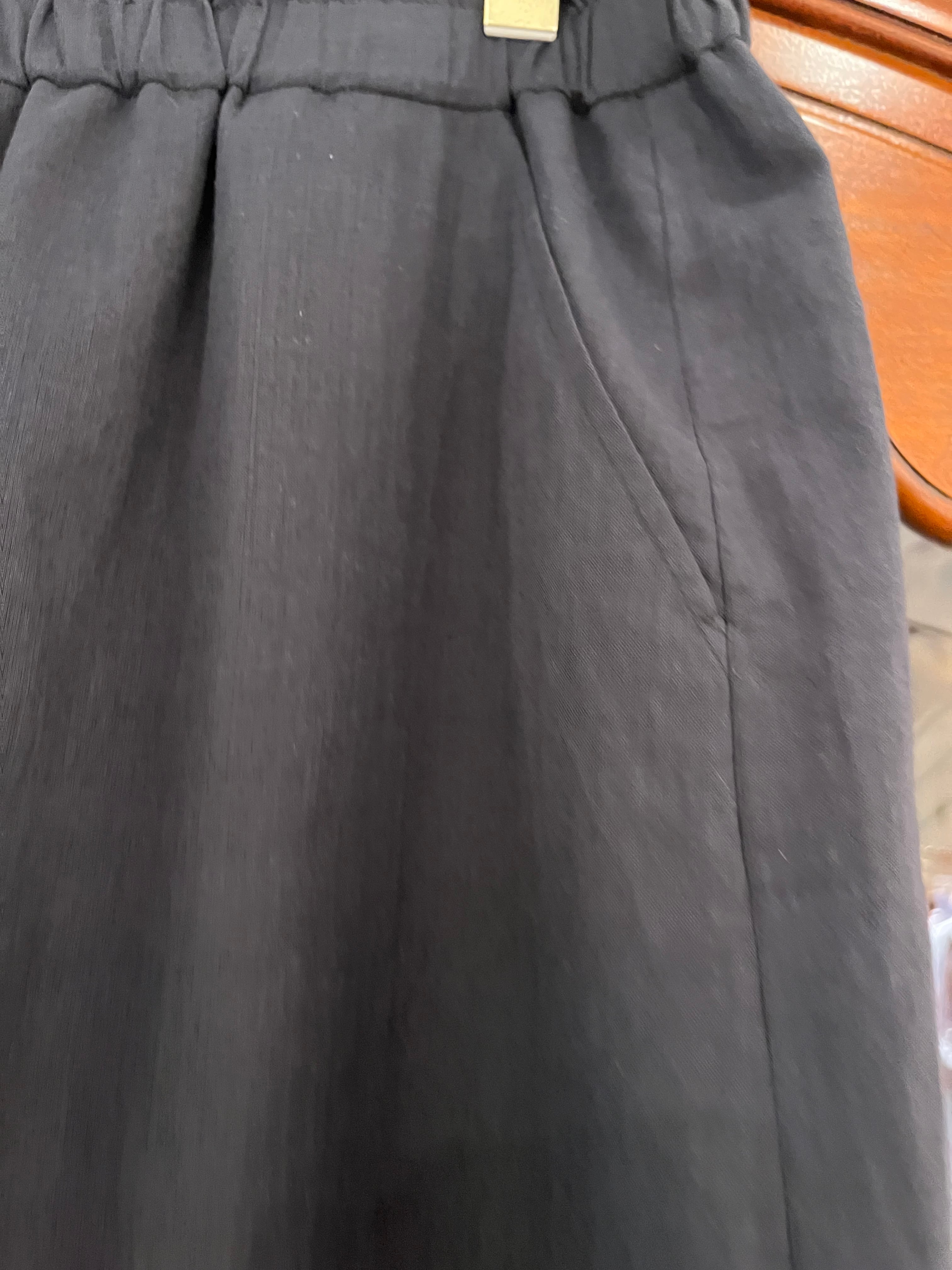 こちらのインド綿生地のブラックカラーのパンツは、裏地は膝下までとなっており、膝下からの透け感があり、風通しがよく涼しくご着用できます。