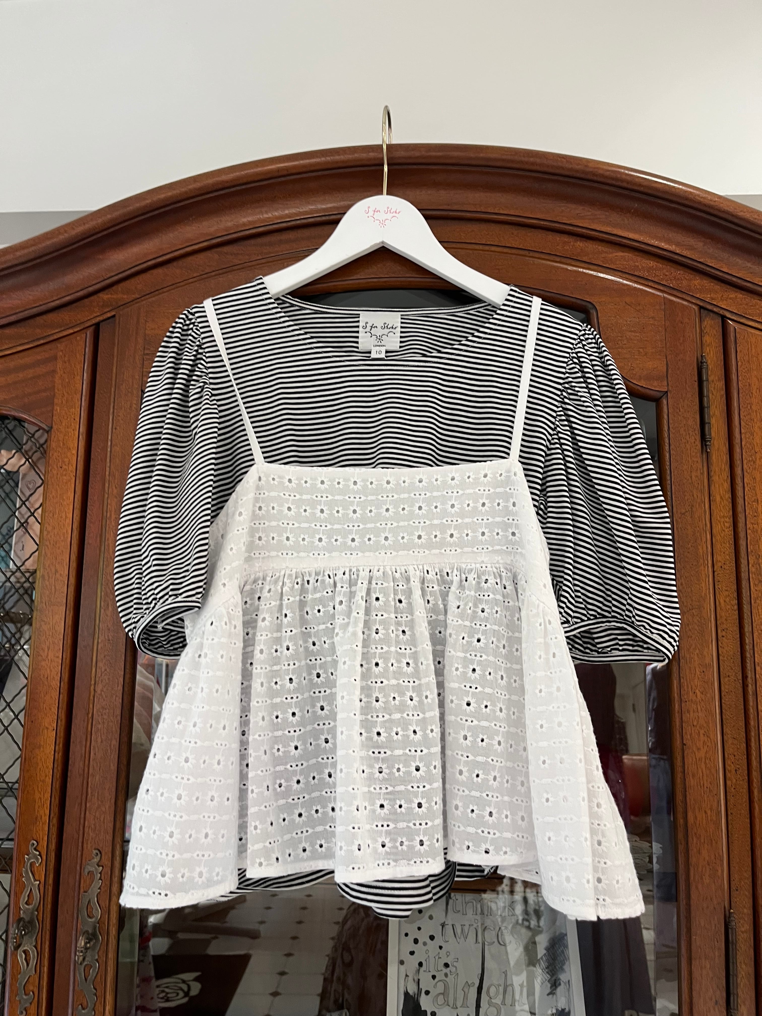 tシャツや、ボリューム袖トップスとの組み合わせ、