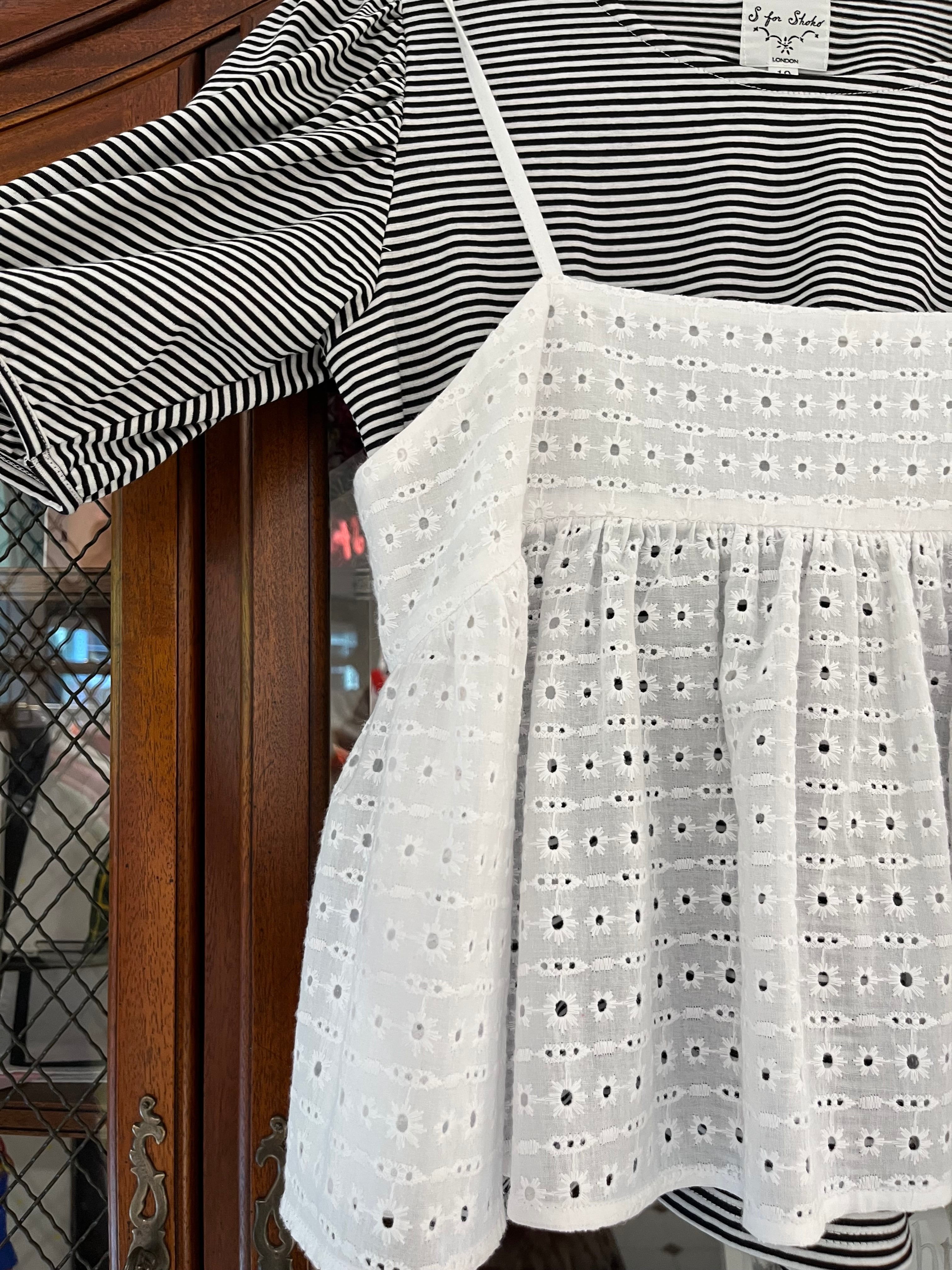 キャミソールのお形は、肩を華奢に見せてくれ、フレアのシルエットのショート丈は
