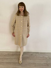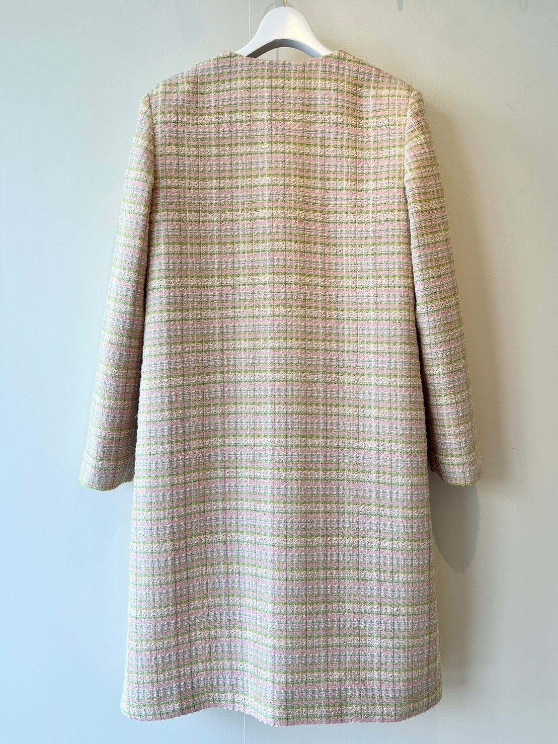 SKY ツイード・ロングコート【ピンクx黄緑】
