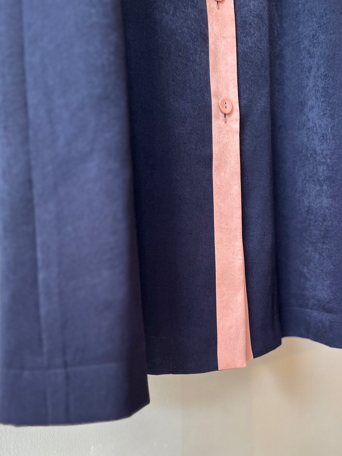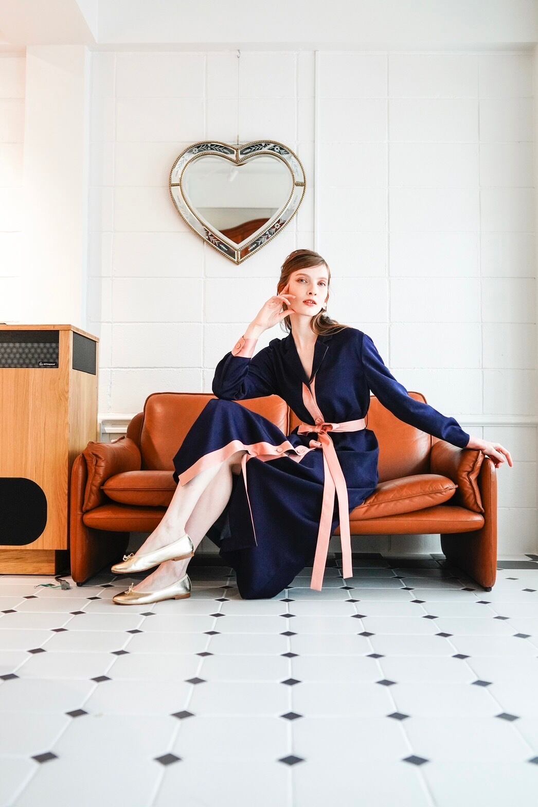 程よい光沢感で上品な印象と柔らかい着心地が特徴なバイカラーのガウンワンピース。ワンピースとしても、アウターとしても着こなして頂けます。