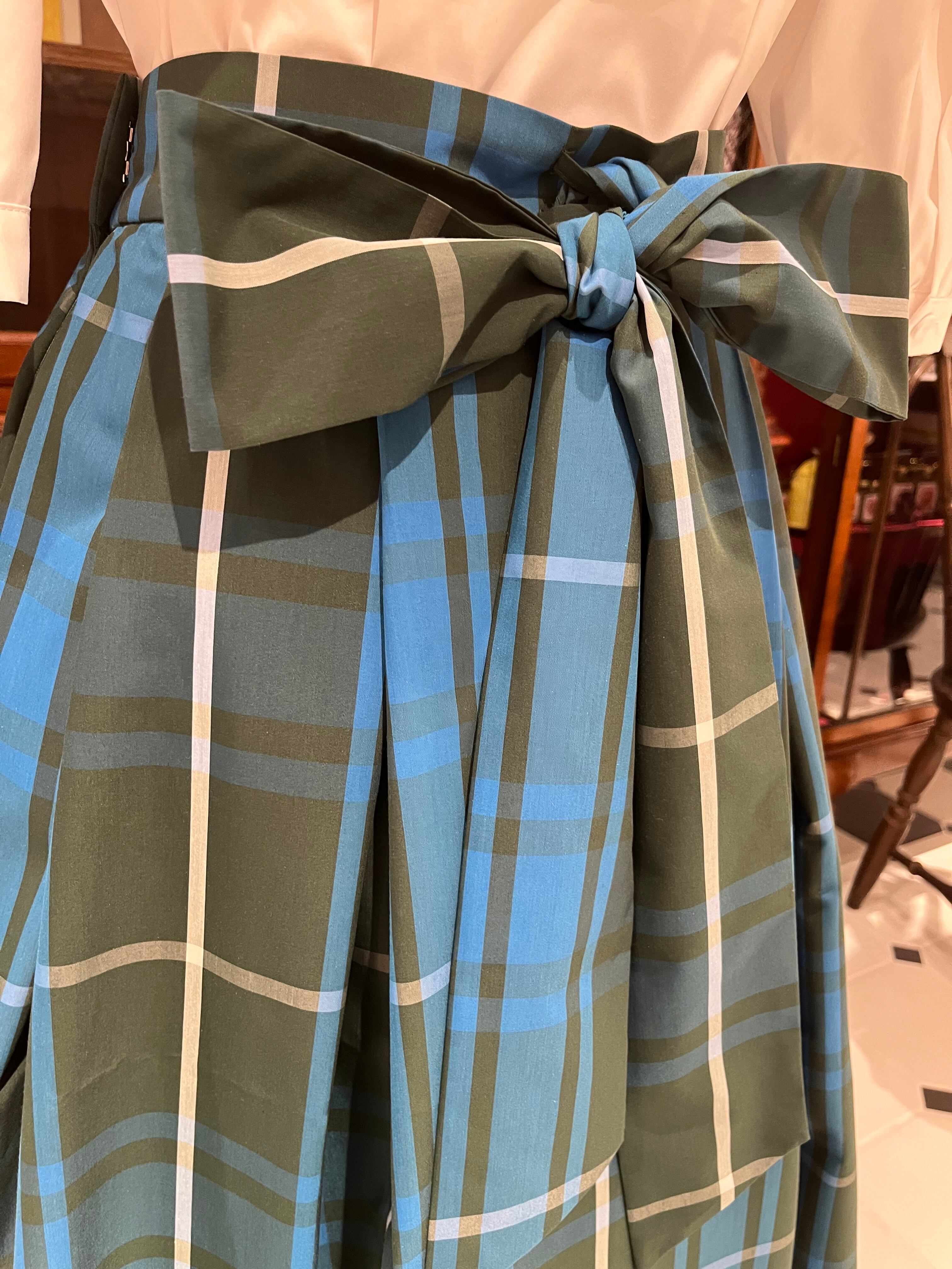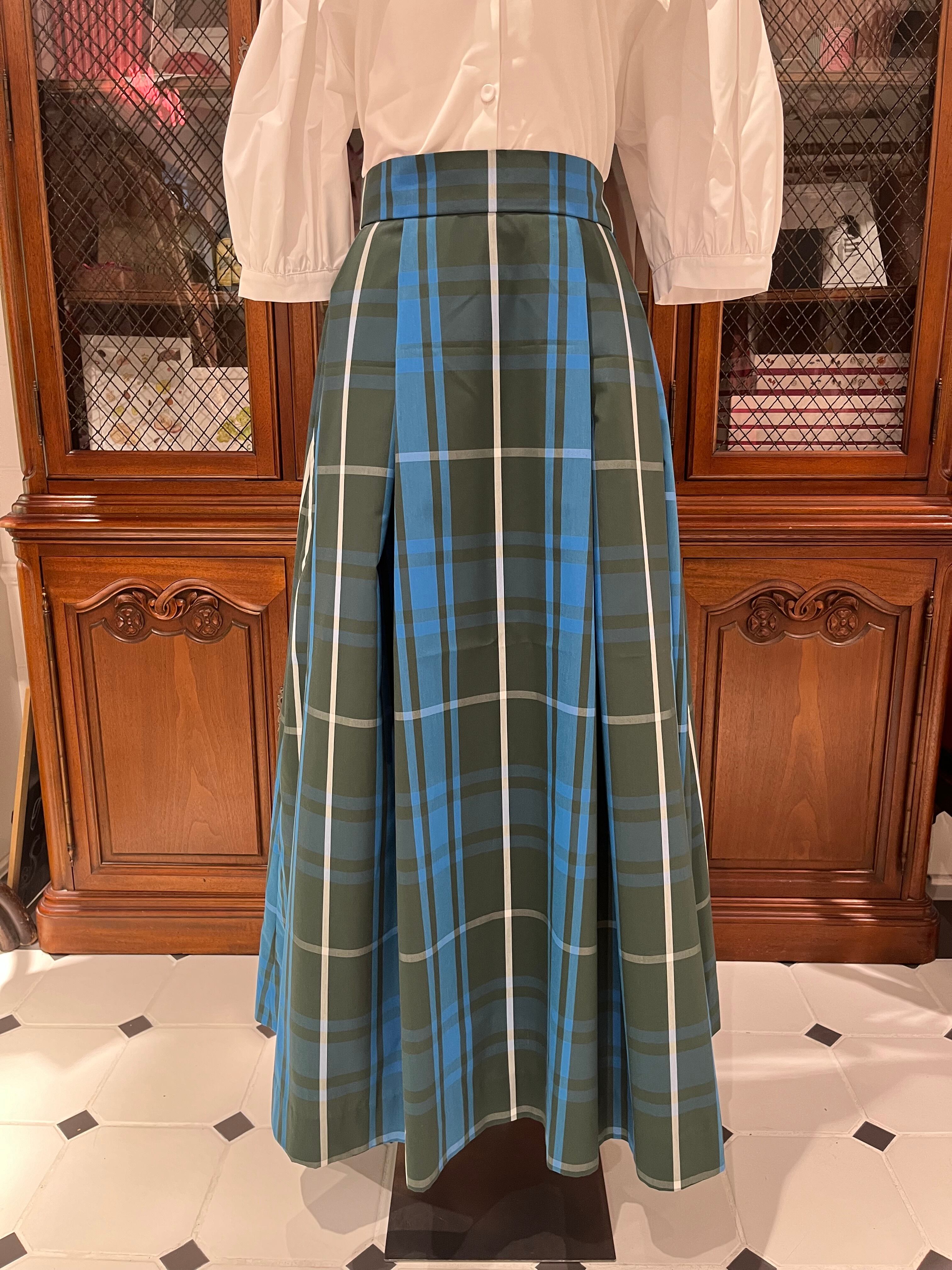 フレアボリュームスカート 緑チェック