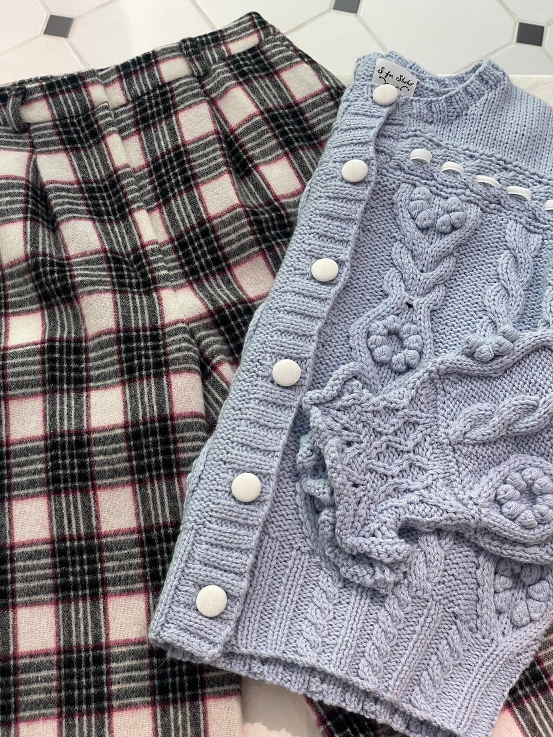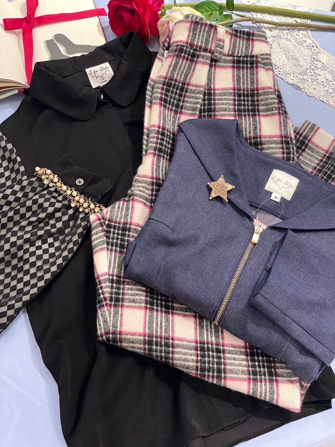 スコットランド発祥の伝統的なタータンチェック生地の中から、糸の色の掛け合わせや風合いを見て生地を厳選し、モダンな表現でS for Shokoらしく上品なアイテムが仕上がりました。