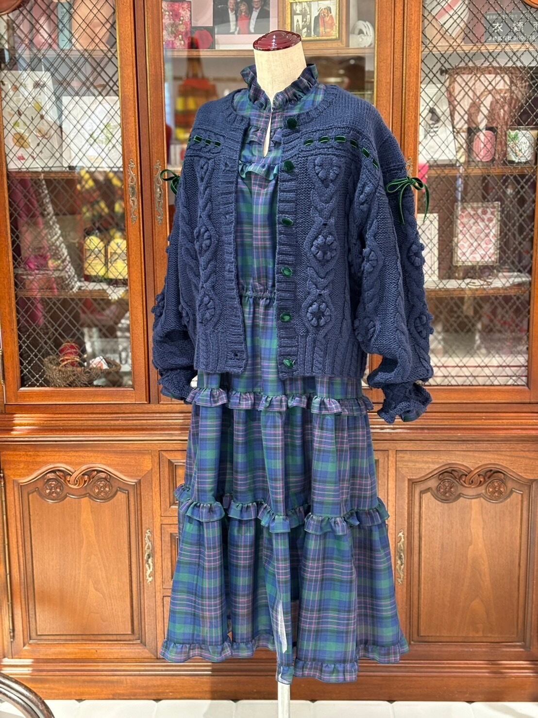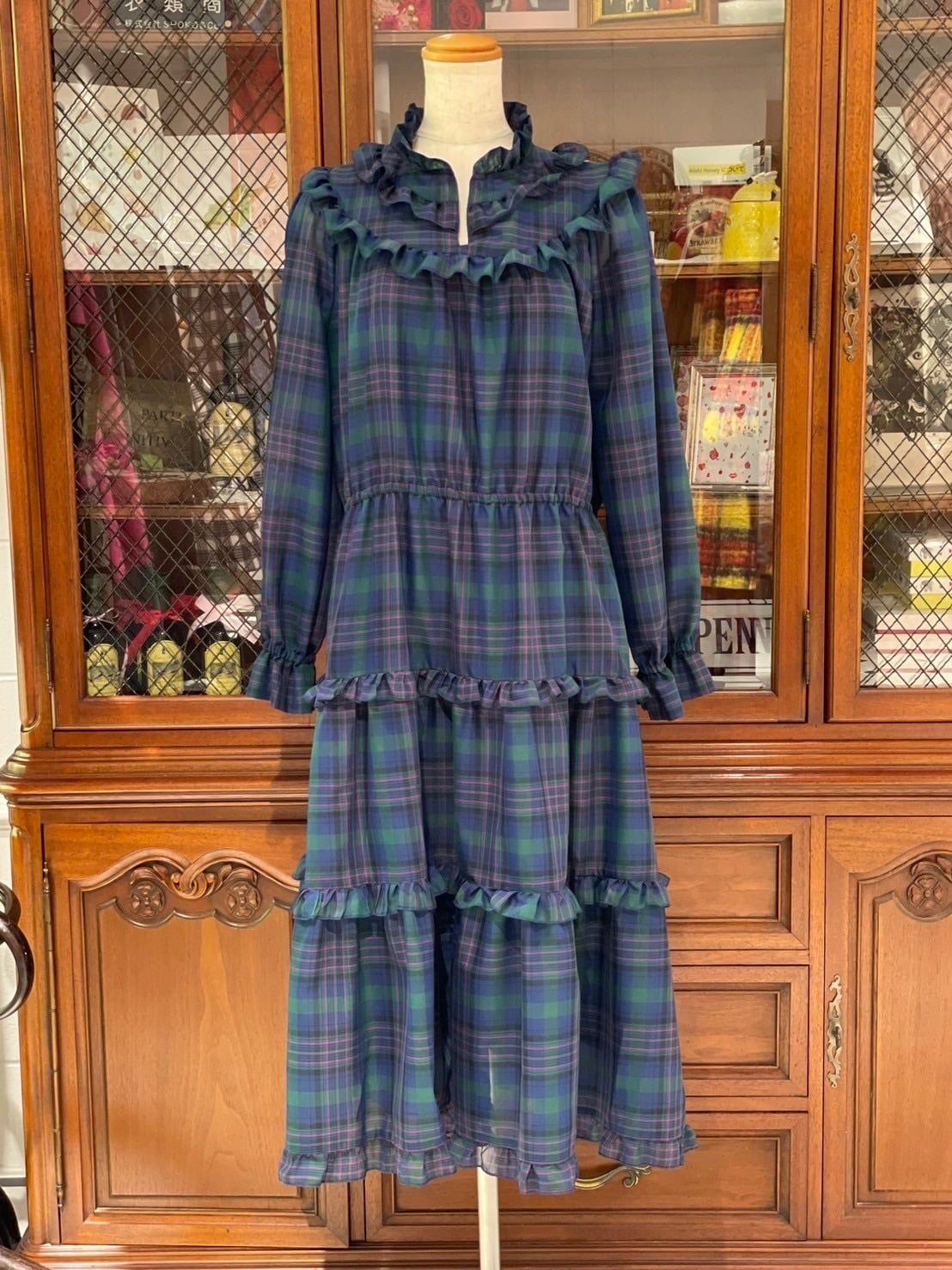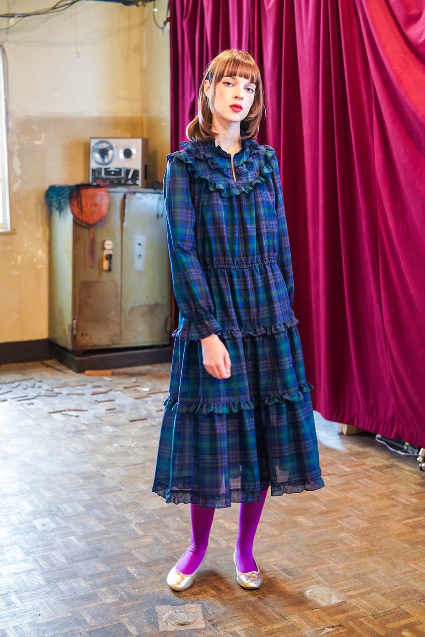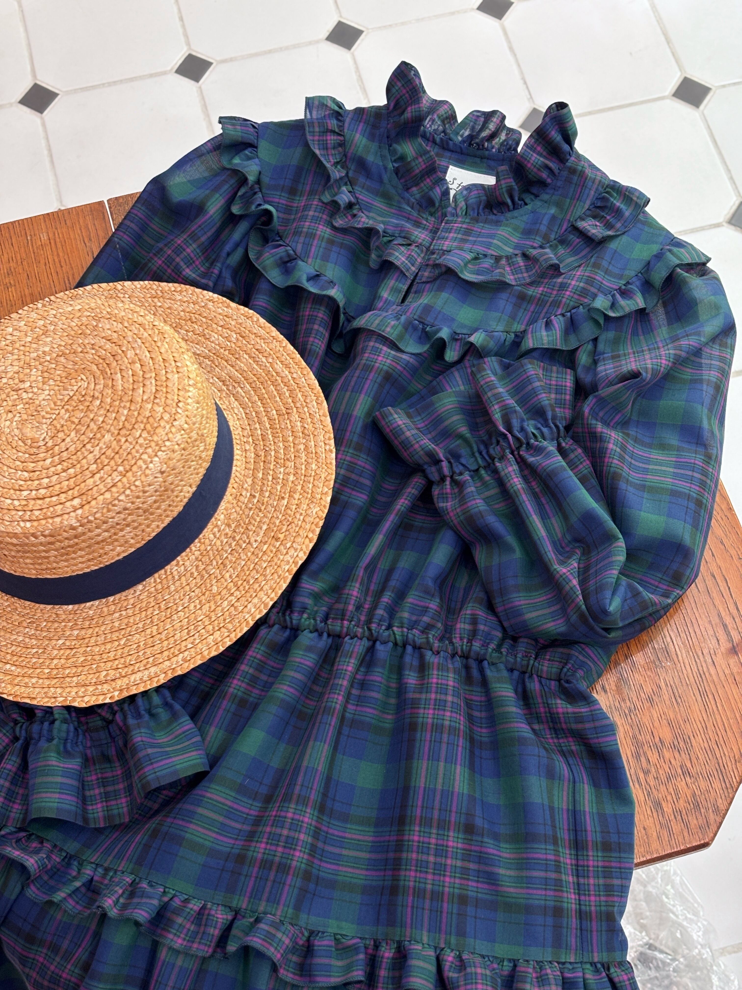 秋冬らしいグリーンチェックの生地がフリルドレスの形で登場。